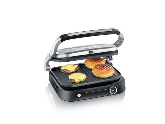 SEVERIN contact grill for sandwiches, steak and as a panini grill, non-stick sandwich maker for fat-free grilling, 800 W, metallic grey/black, KG 2394