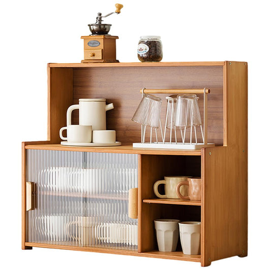 SINBINTA Bamboo Kitchen Sideboard, Kitchen Cabinet with 2 Glass Sliding Doors, Freestanding Dining Cabinet, Storage Cabinet for Bottles, Bowls, 67 cm Long