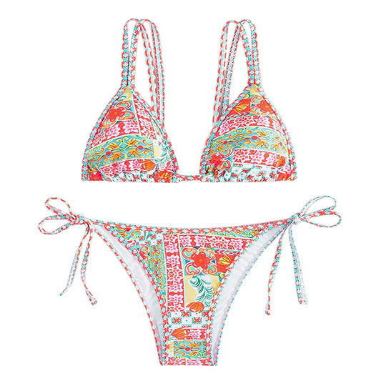 SNOMYRS Women's Triangle Bikini 2-Piece Floral High-Waisted Swimsuit Set