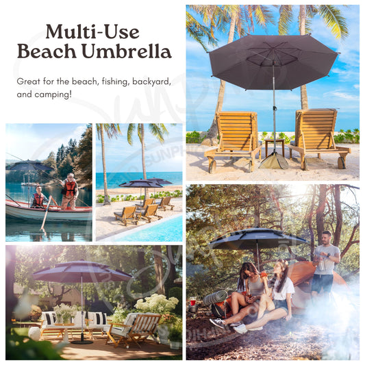 Sunphio Beach Parasol 220 cm, Windproof and Stable, Large and Small Beach Umbrella, Lightweight for Travel, UV Protection 50, Portable Beach Sunshade with Ground Spike