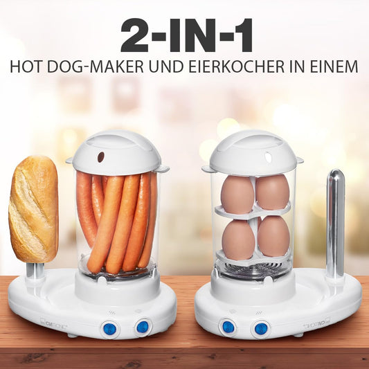 Clatronic® 2in1 Hot Dog Maker & Egg Cooker | Hotdog Maker Set for 1-14 sausages | Egg Cooker for up to 6 eggs | with heated stainless steel attachment | including measuring cup with egg pick | HDM 3420 EK N