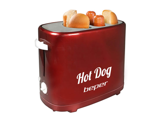 BEPER BT.150Y Hot Dog Maker with 5 cooking levels - Hot Dog Machine in Vintage Design, Red, 750 W