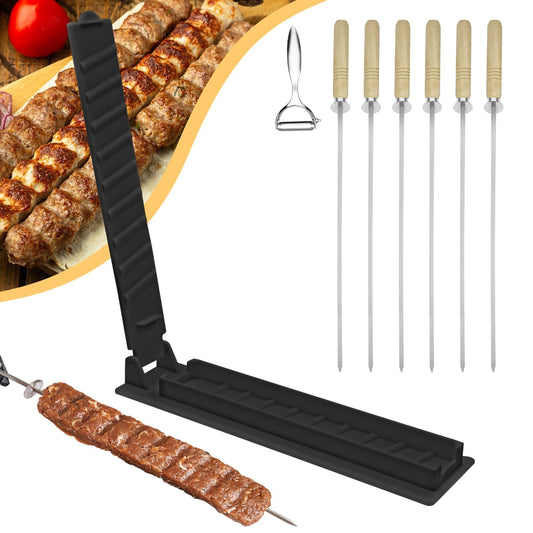 PAXLINSEN Large Kebab Maker Plastic Press with 6 Stainless Steel Skewers and 1 Peeler, Kabob Skewers Barbecue Machine Maker Mold, Portable Easy to Use Kebabs Essential Grilling Tool