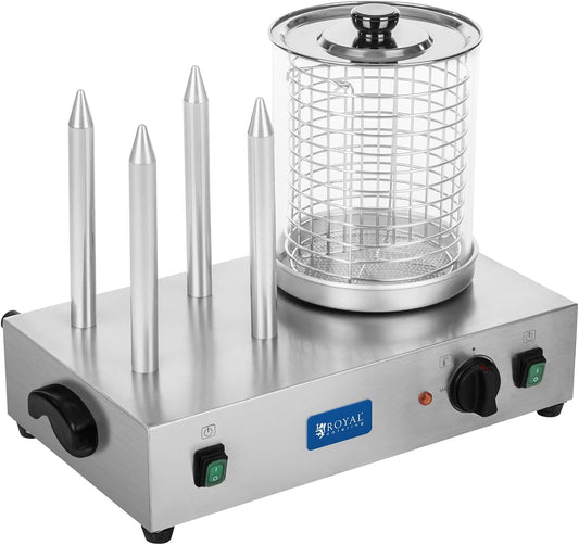 Royal Catering Hot Dog Machine Gastro Hot Dog Maker Professional RCHW 2300 (Power 1100 Watt, Temperature 0-95 °C, Cylinder Height 24 cm, Cylinder Diameter 20 cm, 4 Toast Sticks)