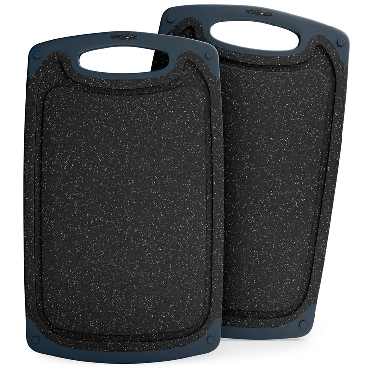 - SAFE HANDLING - Each cutting board features non-slip TPR edges and juice grooves that enhance safety and prevent juices from spilling while cutting. Perfect for clean and smooth food preparation in the kitchen.