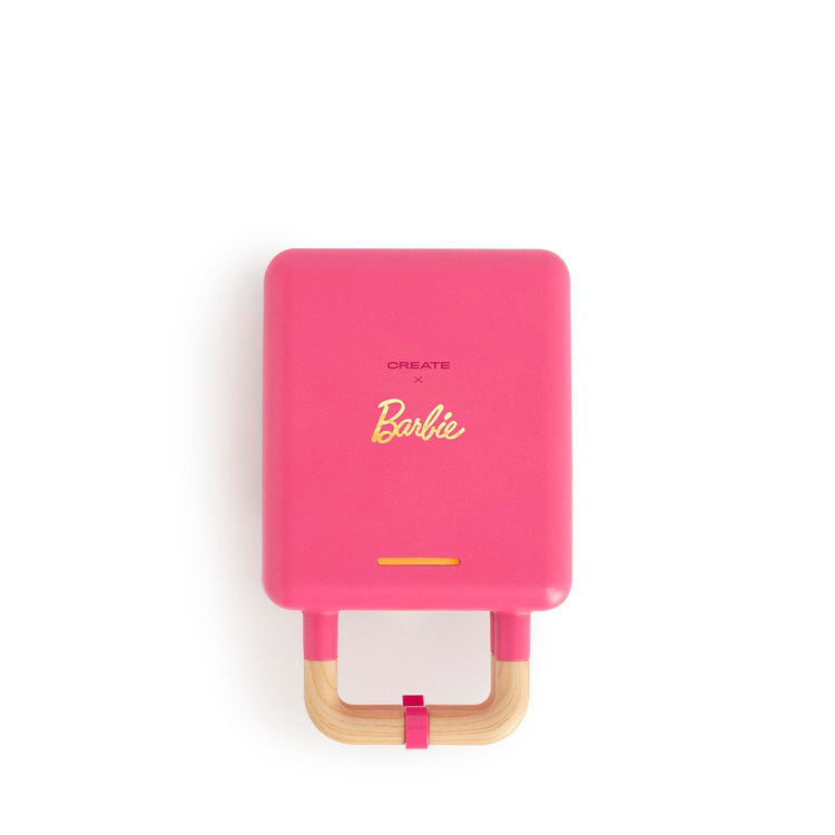 CREATE/STONE STUDIO/Sandwich maker and waffle iron in pink Barbie / 2 interchangeable non-stick plates, 1 disc, 100º opening, BPA-free, 105º opening, cool-touch handle, 600W