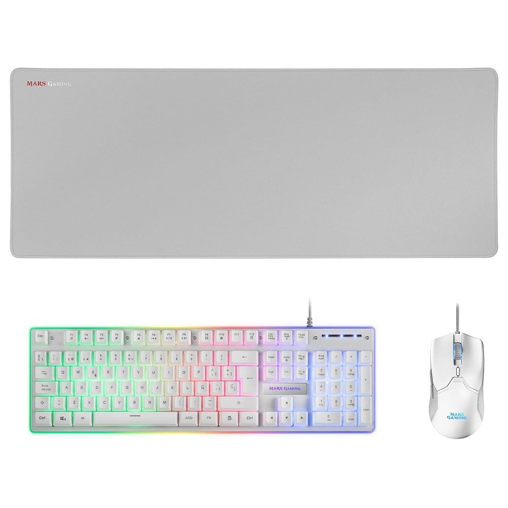 - Gaming Pack with cross-platform compatibility: MCP-RGB3 gaming combo with everything you need to achieve victory in your most intense games; fixed RGB keyboard, RGB Flow gaming mouse, XXL mouse pad and RGB headset; Compatible with a variety of gaming platforms, including Windows, PS4, PS5, XBOX ONE, XBOX SERIES XS and Mac, for a worry-free and unrestricted experience; Color: white