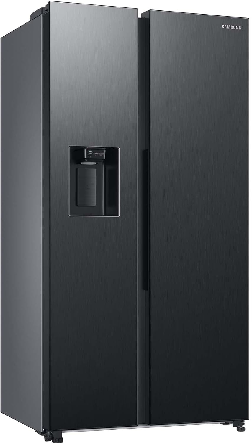 Samsung side-by-side refrigerator with freezer compartment, 178 cm, 634 l total volume, 225 l freezer compartment, AI Energy Mode, water and ice dispenser, fresh water connection, Premium Black Steel