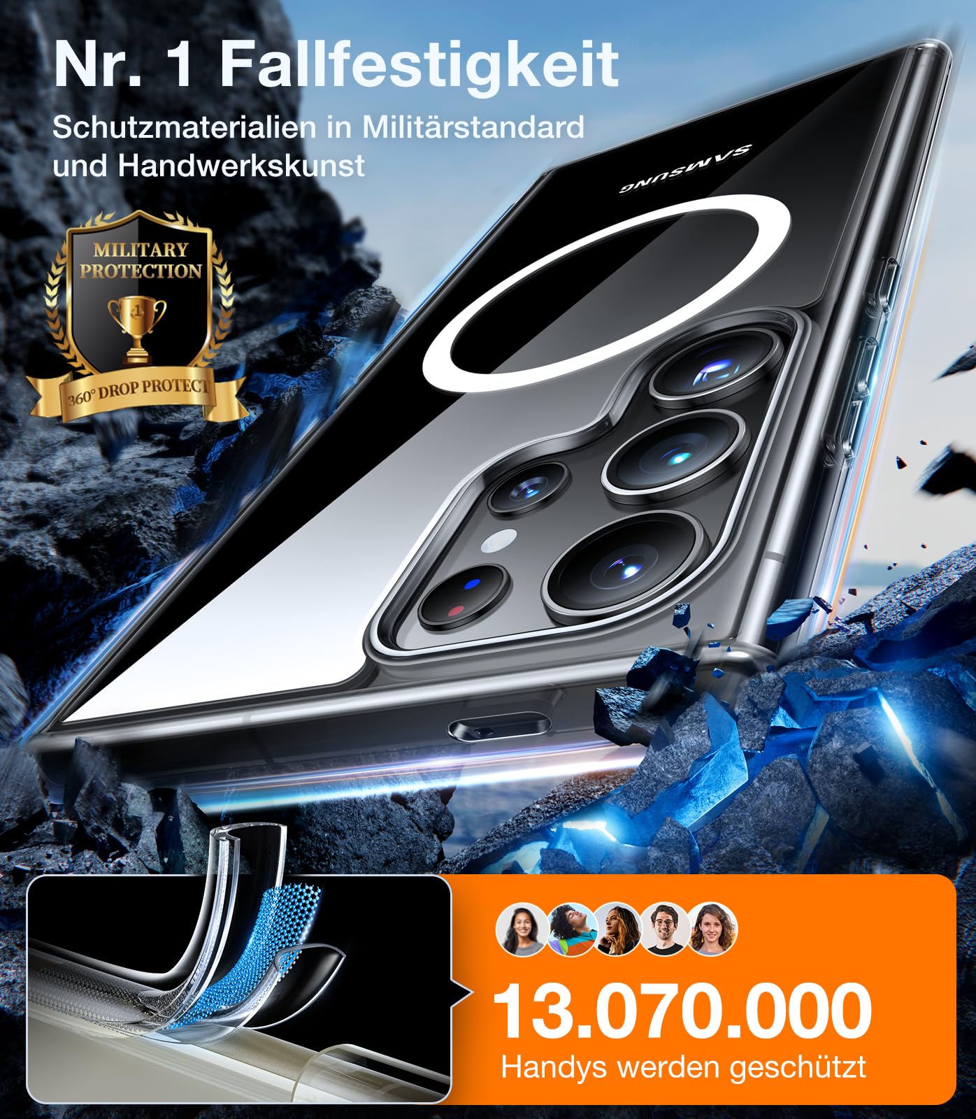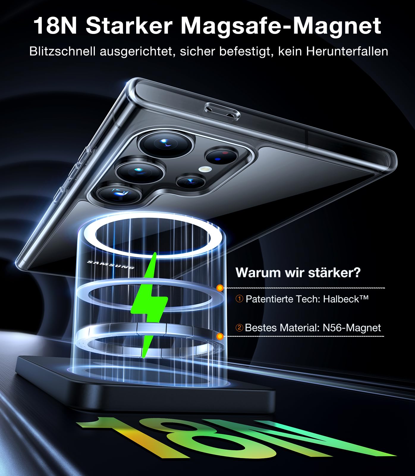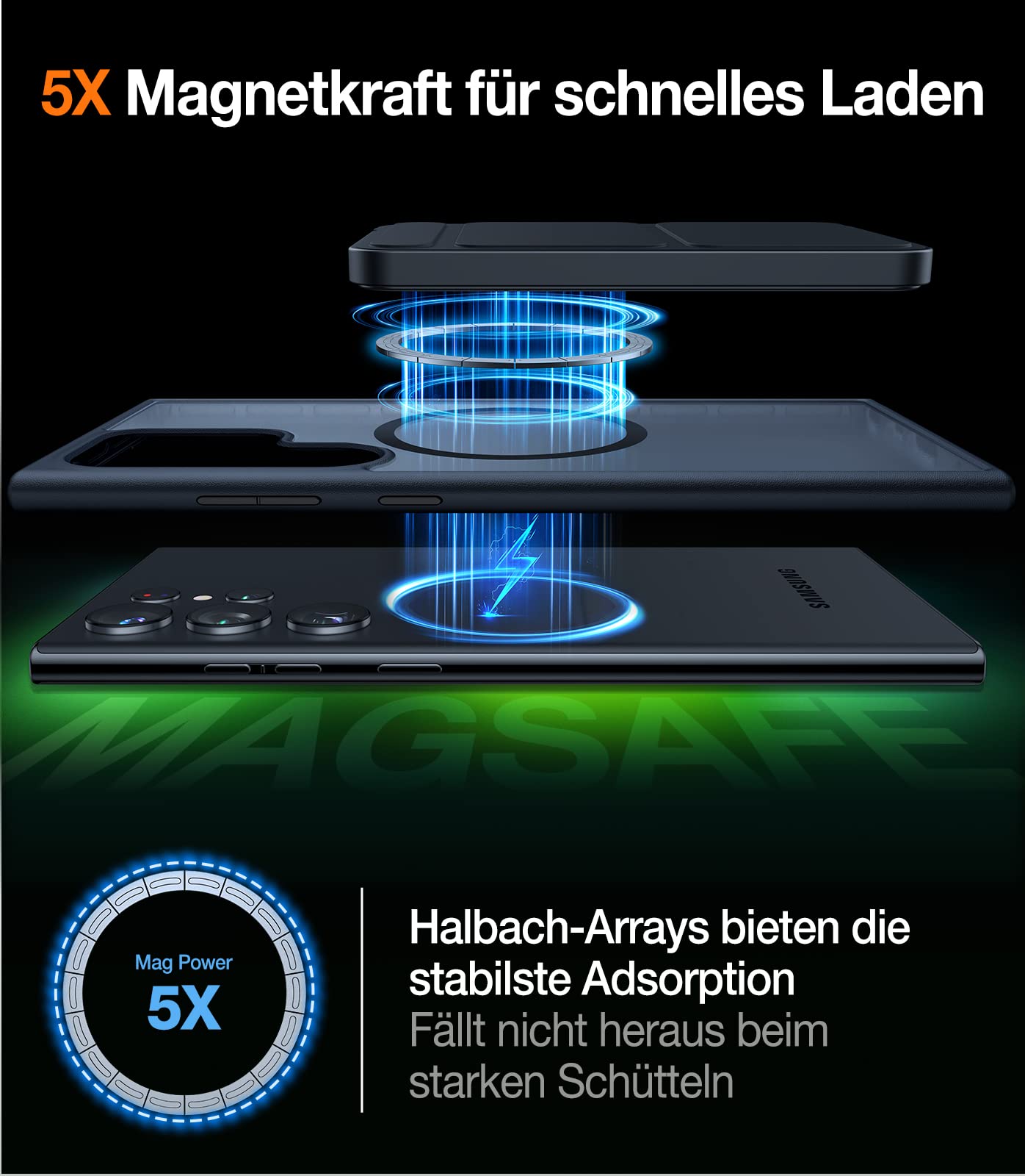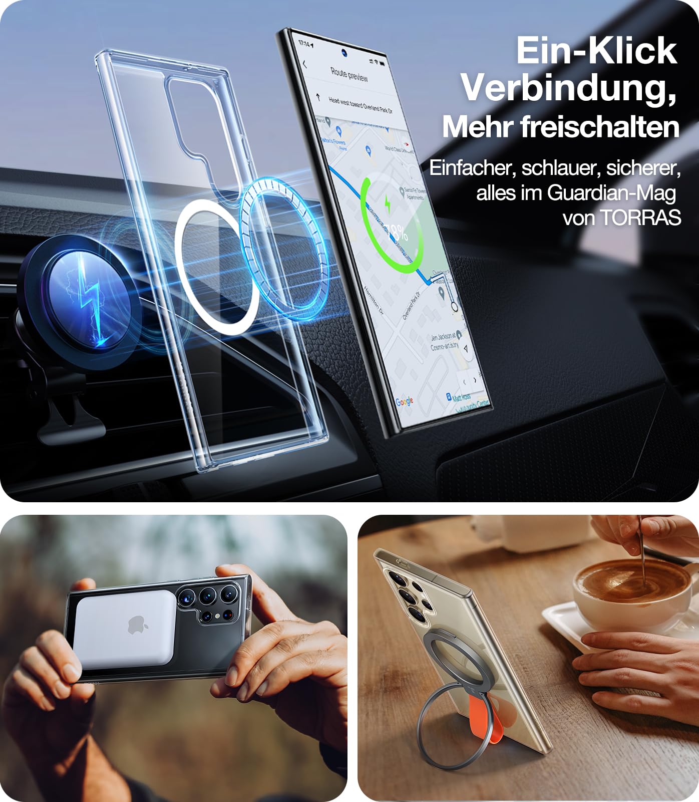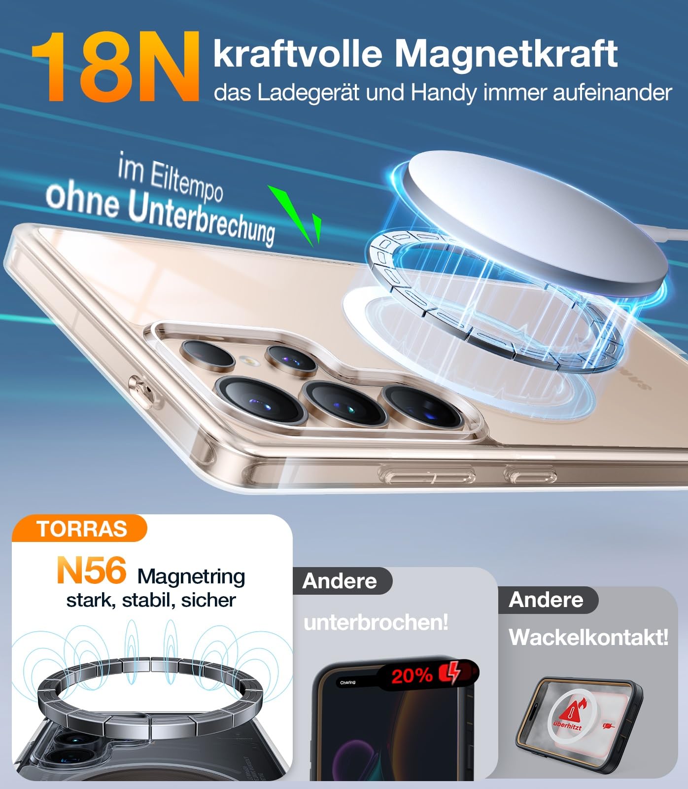 - Guardian-Mag makes your Samsung S25 Ultra compatible with a variety of magnetic accessories. TORRAS exclusive Halbach magnetic ring can achieve an industry-leading magnetic attraction of 18N. Whether you use it for wireless charging or with other magnetic car mounts, power bank and mounts, this Samsung S25 Ultra case is a very stable and practical choice.