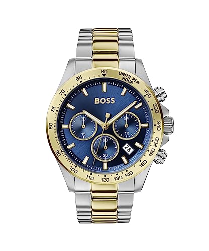 BOSS Chronograph Quarz Uhr für Herren mit Silbernes Edelstahlarmband
