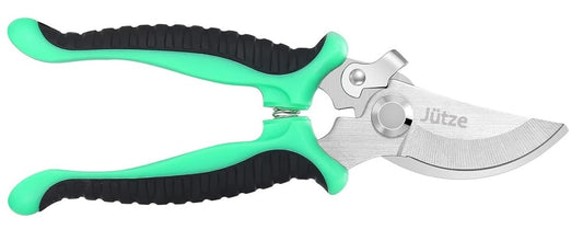 Jütze® Gartenschere für Sträucher und Blumen mit Rutschfester Griff & Edelstahl-Klinge, Leicht & Ergonomisch Rosenschere, Sicher mit Klingensperre, Beidhändig bedienbar, Länge 19cm