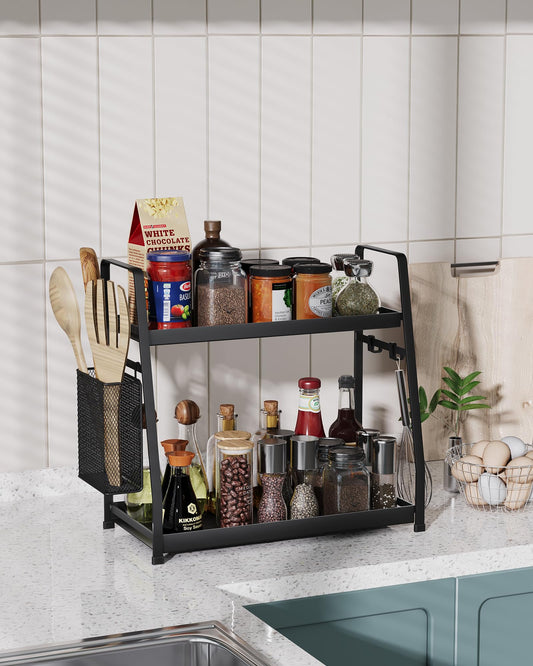OROPY 2 Tier Gewürzregal für Arbeitsplatte, Metall Stehende Küche Lagerung Veranstalter Regal, Vertikale Würze Jars Rack, schwarz