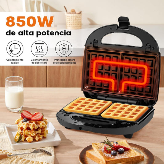 Pukomc 3-in-1 Sandwich Maker Antihaft-Panini-Presse, 850 W Grill, Tostadora De Pan Sandwichera, Herausnehmbare Grillplatten, Kontaktgrill, Waffeleisen, Doppelseitige Heizung, Schwarz