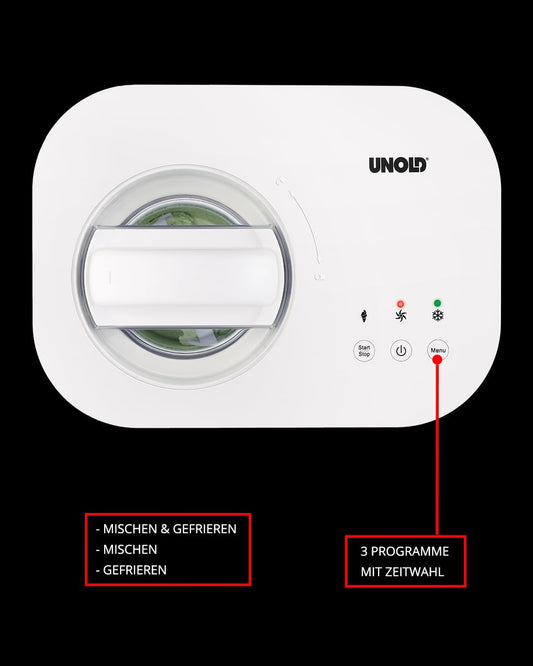 UNOLD 48820 EISMASCHINE Snow - selbstkühlender Kompressor, 100 W, entnehmbarer Eisbehälter, auch für vegane, laktosefreie und steviahaltige Eiskreationen
