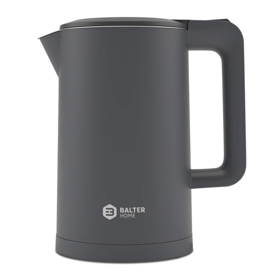 Balter Wasserkocher Edelstahl WK-4, 1,7 Liter, elektrischer Wasserkocher, Doppelwand Design, BPA frei, LED, Teekocher Kompakt, leise (Schwarz)