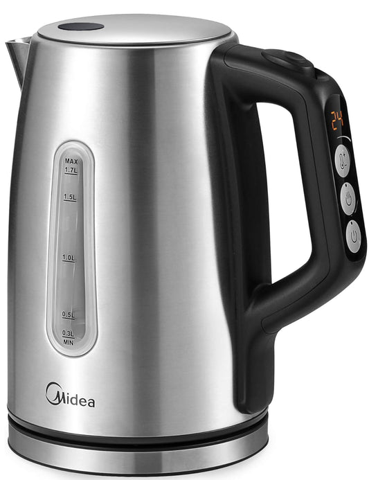 Midea Wasserkocher mit Temperatureinstellung (40, 60, 70, 80, 90, 100 Degree C),Edelstahl 1,7 Liter,Kettle 2200W mit Sichtfenster, Warmhaltefunktion für 60 Min