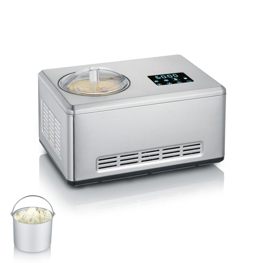SEVERIN 2-in-1 Eismaschine mit Joghurtfunktion, Eismaschine mit Kompressor für Eis, Sorbet und Frozen Joghurt, Joghurtbereiter mit "warm & cold"-Funktion, Edelstahl-gebürstet, EZ 7405