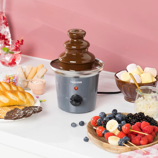 Tristar Edelstahl Schokobrunnen - 3 Ebenen, 0,4 Liter, Warmhaltefunktion, 32 Watt, CF-1603, Metallic