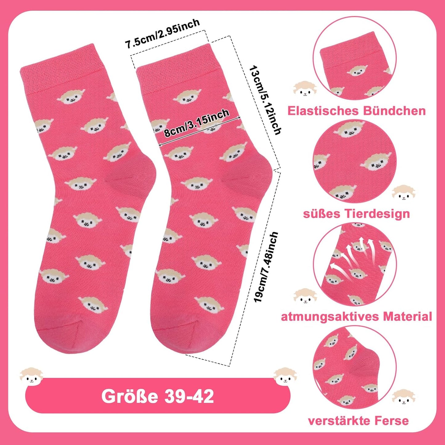Add some fun and warmth to your wardrobe with these 8 pairs of women's funny animal socks. Made from 80% cotton, these socks are soft, breathable, and moisture-wicking, offering a comfortable fit for everyday wear. With cute animal-themed prints, these socks make a playful and unique addition to your collection. They are perfect for any occasion, whether you’re lounging at home, hiking, or going out. These socks come in multiple color options and are designed for EU shoe size 39-42, making them an ideal gift for animal lovers. Whether it's for a birthday, Christmas, or just to bring a smile to someone's face, these socks will provide both warmth and comfort.