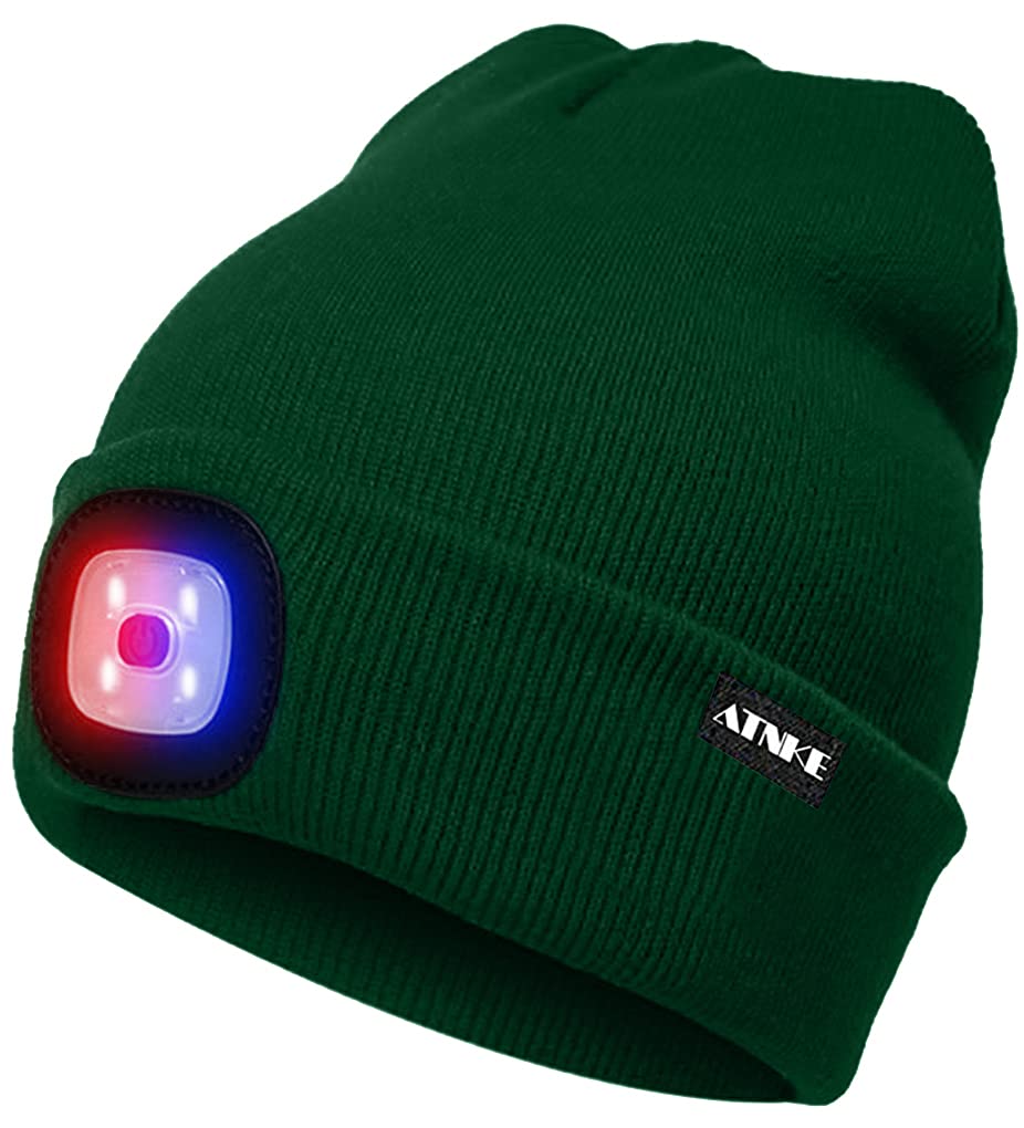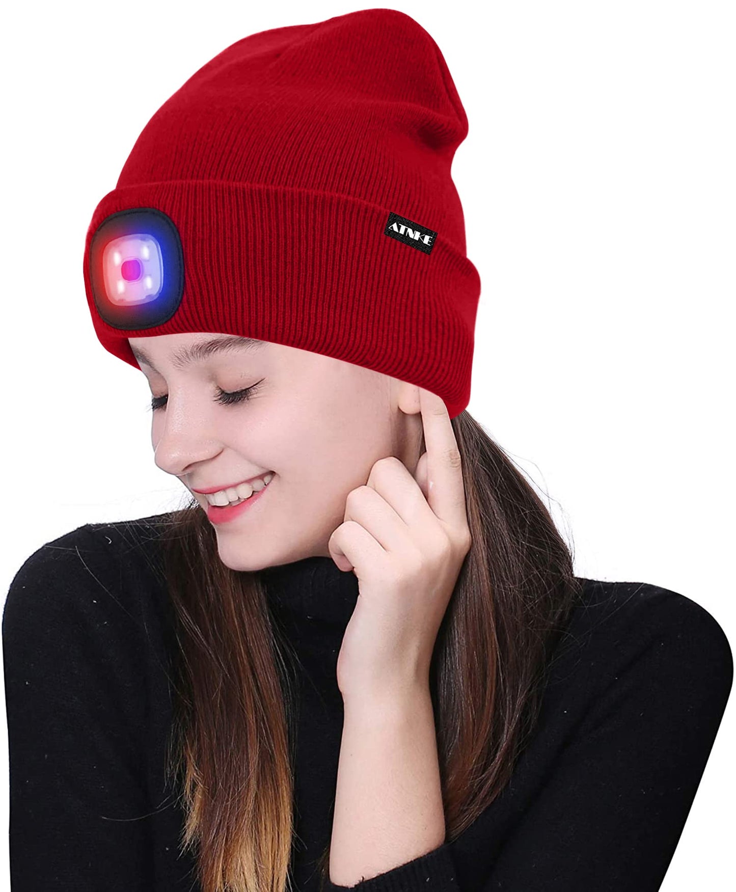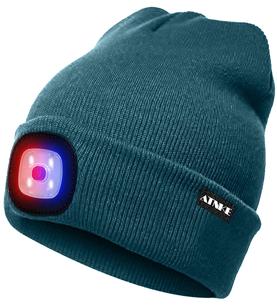 ATNKE LED Beleuchtete Mütze,Wiederaufladbare USB 4 LED Rot und Blau Leuchten Blinkender Laufmütze mit Licht Extrem Heller Lampe Winter Warme für Herren und Damen Geschenke