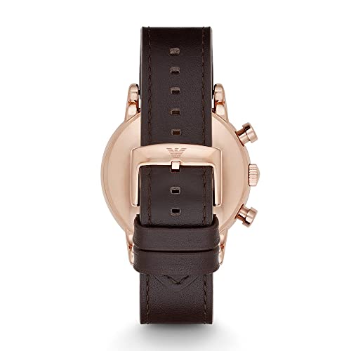 Edelstahl und reiches braunes Leder sind das perfekte Paar in dieser mühelos stilvollen Iteration eines Eckpfeilers der Emporio Armani Men's Collection