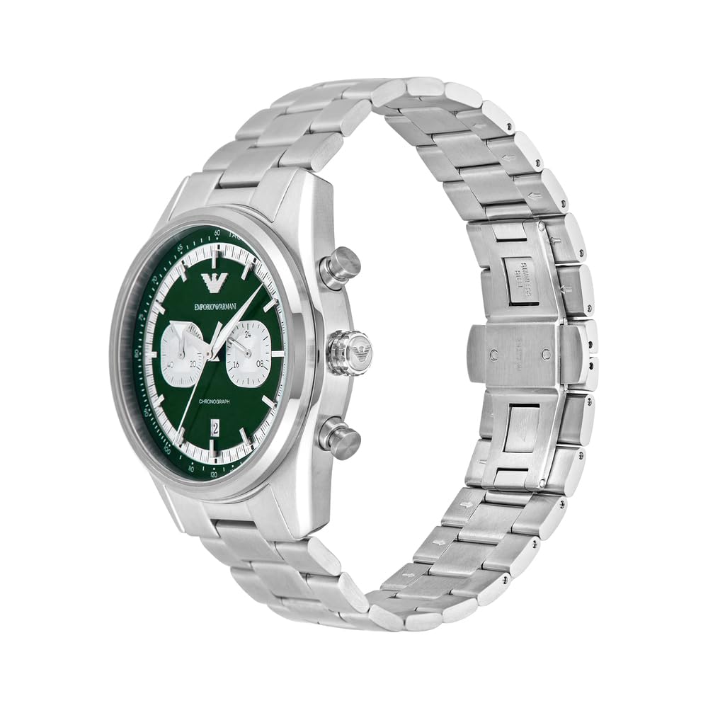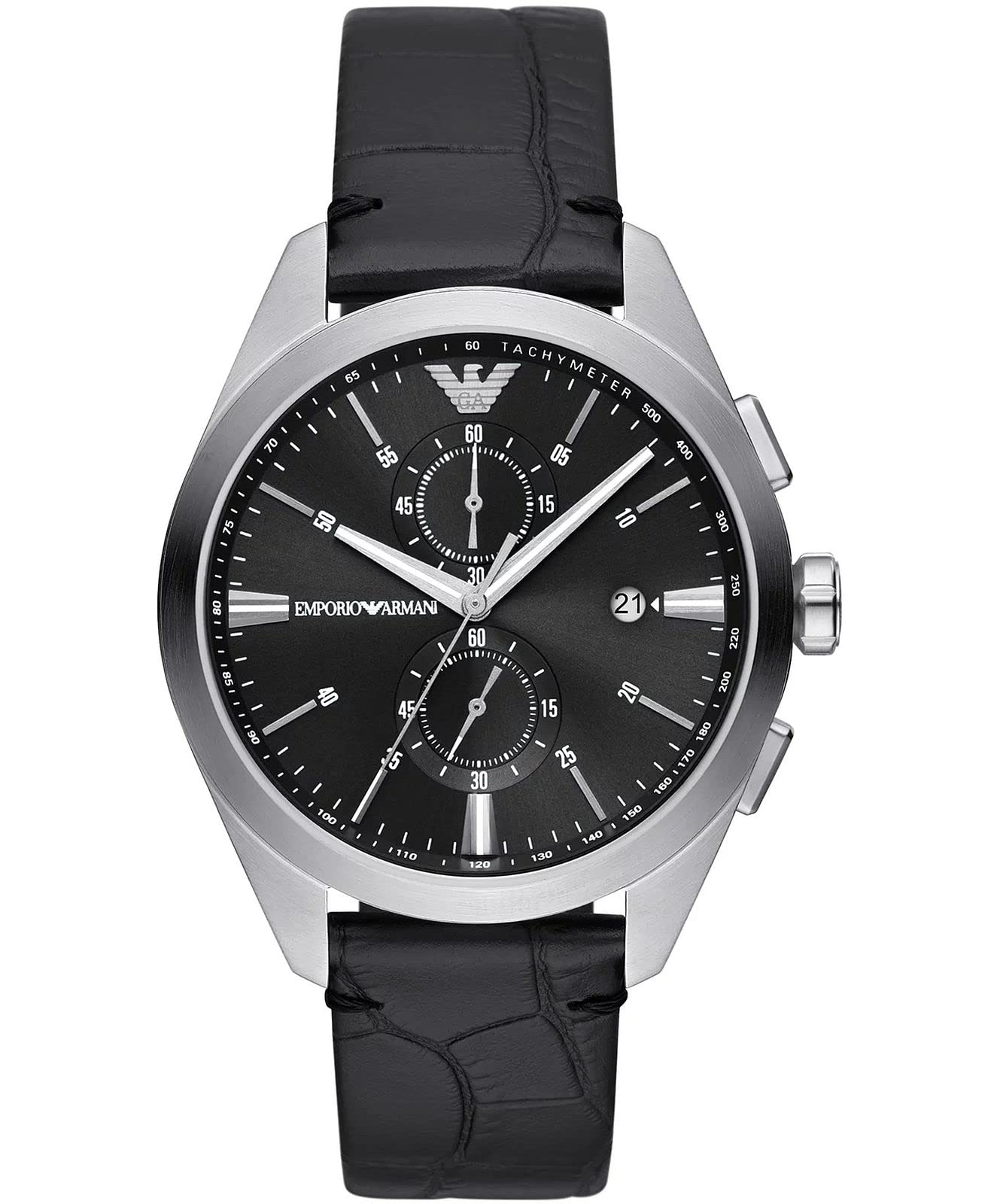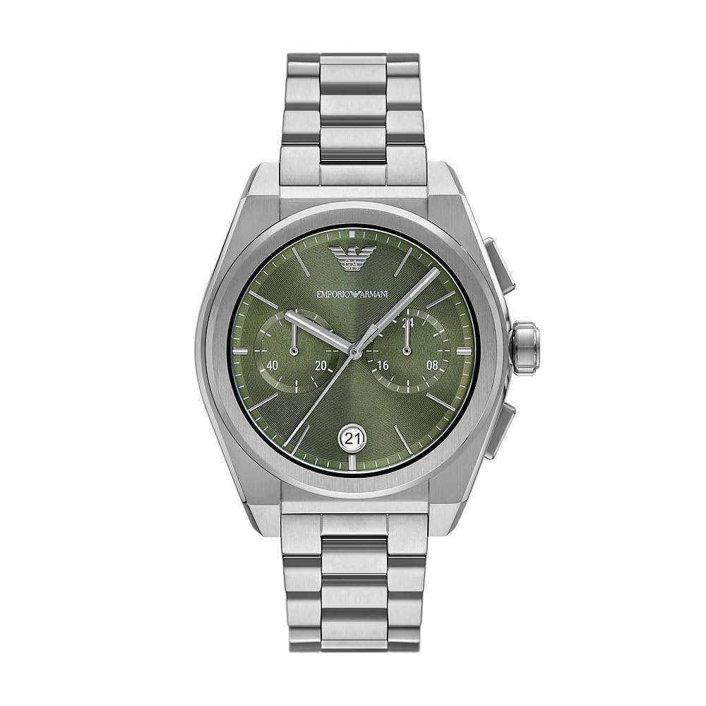 Emporio Armani Uhr für Männer, 2 Unterzifferblätter Chronographenwerk und 43mm Gehäusegröße mit Edelstahl-, Leder- oder Silikonarmband