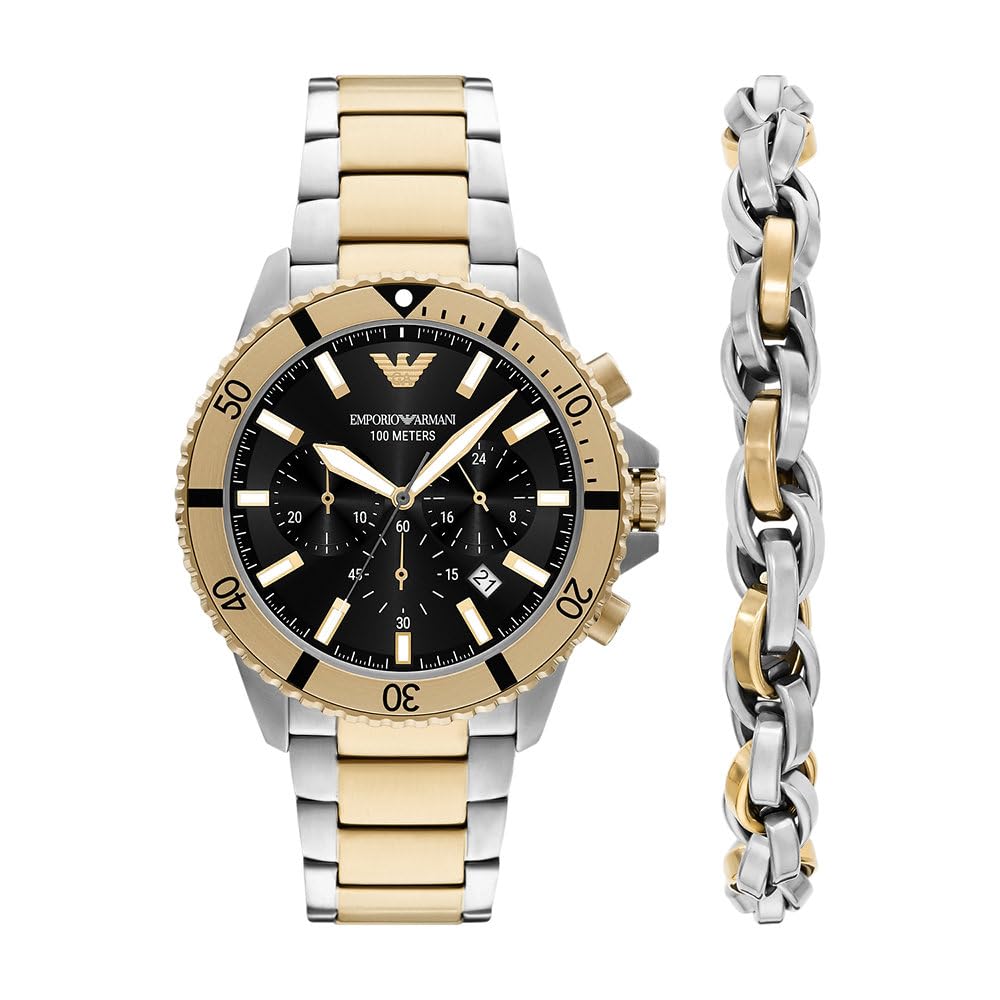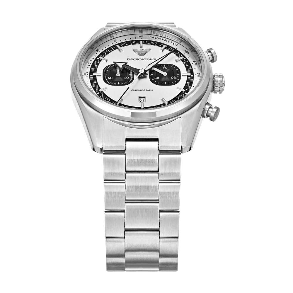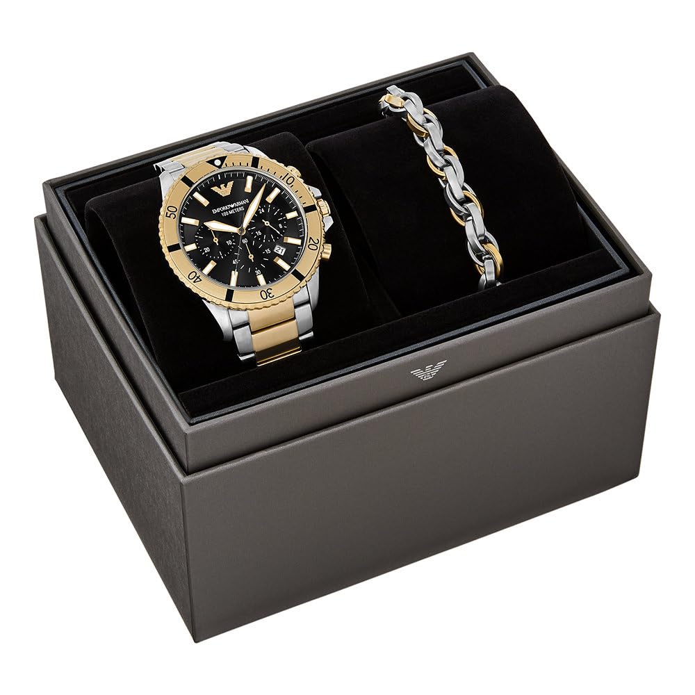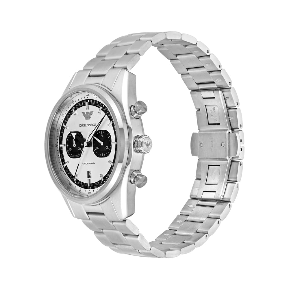 Emporio Armani Uhr für Männer, 2 Unterzifferblätter Chronographenwerk und 43mm Gehäusegröße mit Edelstahl-, Leder- oder Silikonarmband