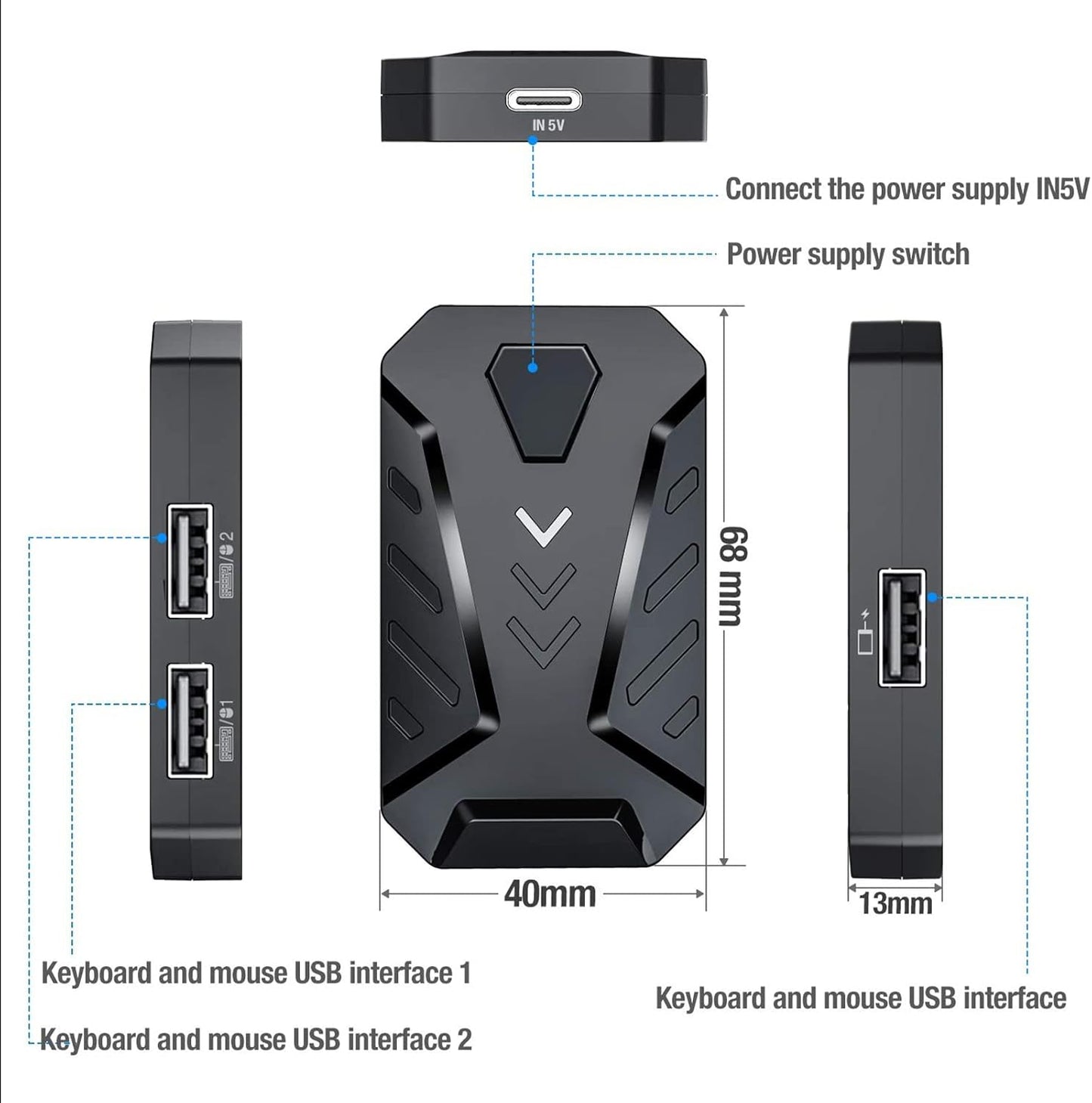 Mobiles Spielset Mobile Gaming-Tastatur-Maus-Konverter mit Tastatur und Maus-Konverter Gaming-Maus Einhändige Kabelgebundene Tastatur(Mix Pro+F6-Tastatur+G2-Maus)