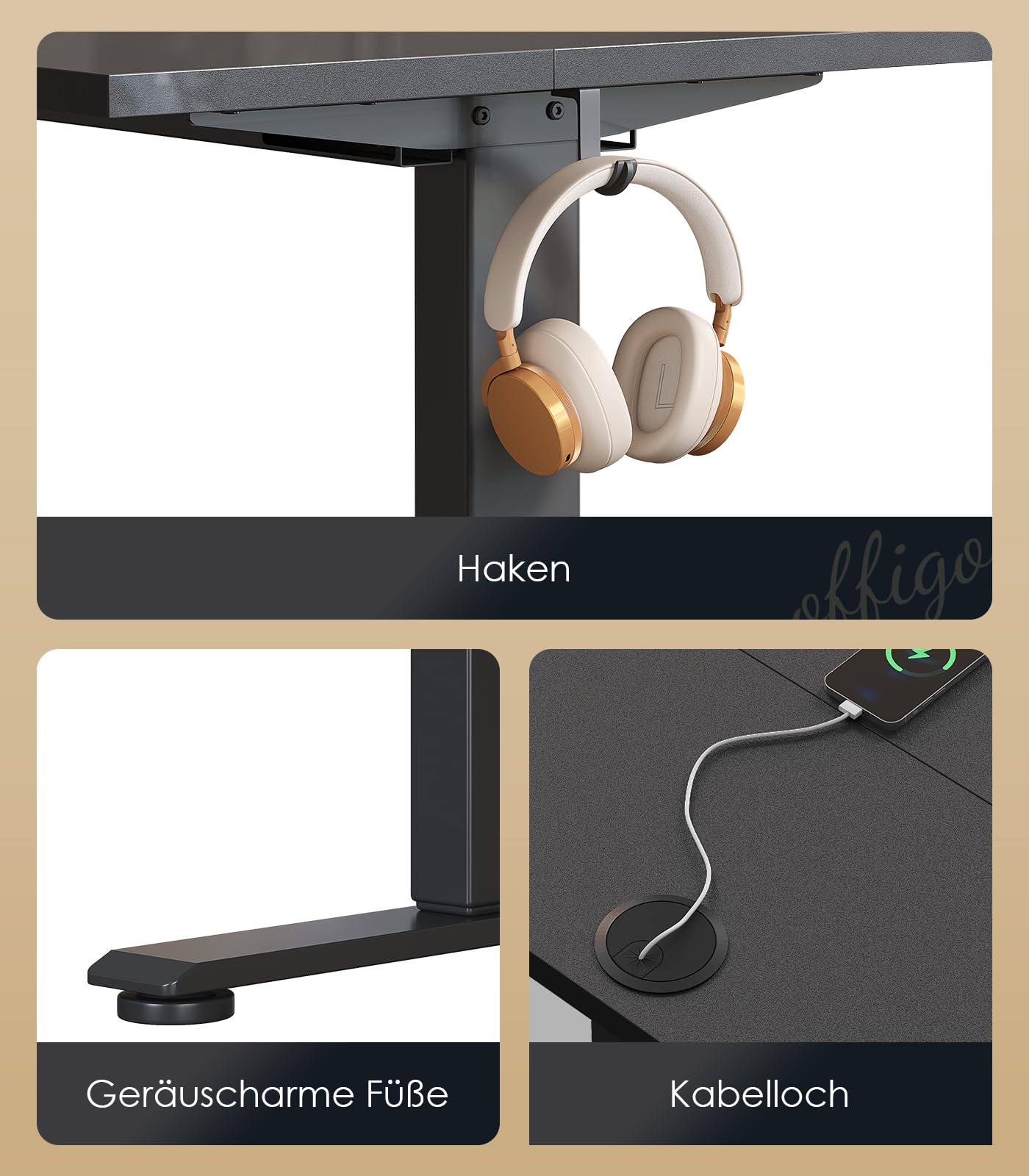 - 2 Platten Schreibtischplatte: Die Schreibtischplatte besteht aus 2 Platten vorne und hinten. Im Vergleich zum herkömmlichen 4-Platten-Tisch optimiert der OffiGo schreibtisch höhenverstellbar elektrisch die Kraftverteilung des Schreibtischs, hat eine bessere Stabilität, einen vollständigeren Schreibtisch und weniger Gelenke. Schaffen Sie einen reibungslosen Arbeitsplatz für Sie.