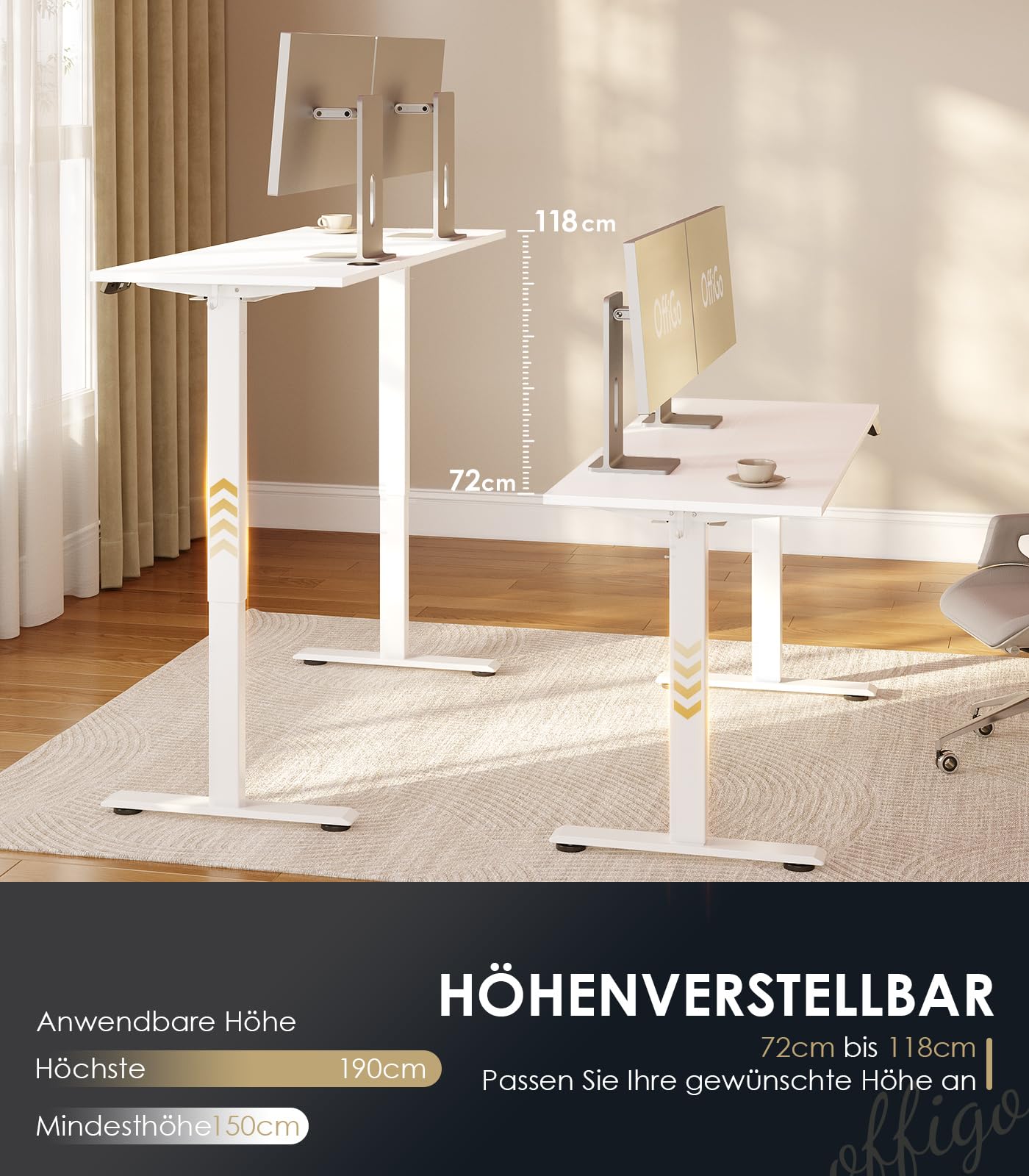 - Fokus auf Motorqualität: OffiGo verstellbarer schreibtisch kann eine Hubhöhe von 72 cm bis 118 cm erreichen. Stabiler, reibungsloser und leiser height adjustable desk mit einem Geräuschpegel zwischen 45 und 55 Dezibel. Präzise Steuerung des Hubs, anwendbar sowohl im Sitzen als auch im Stehen. 2 Speicherfunktionen sind praktisch, Sie können die häufig verwendete Sitzhöhe und Stehhöhe speichern. Sie können schnell stehpult zu einer bestimmten Höhe wechseln.