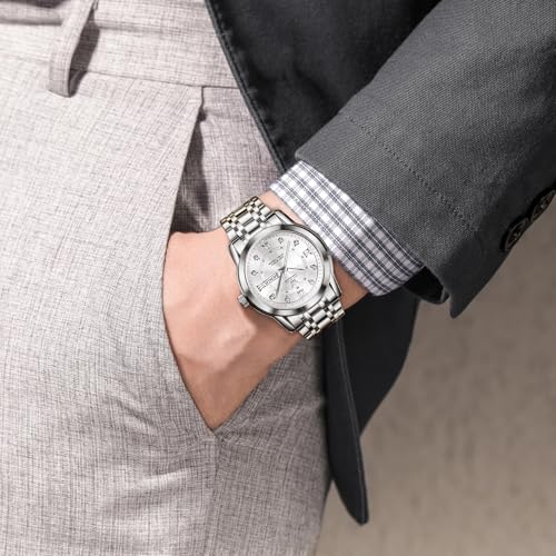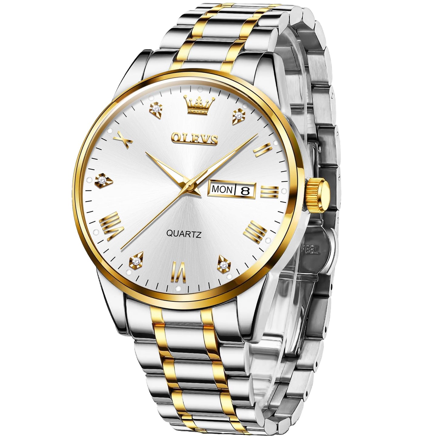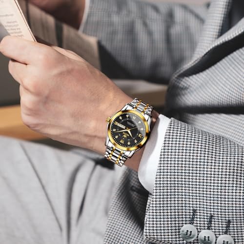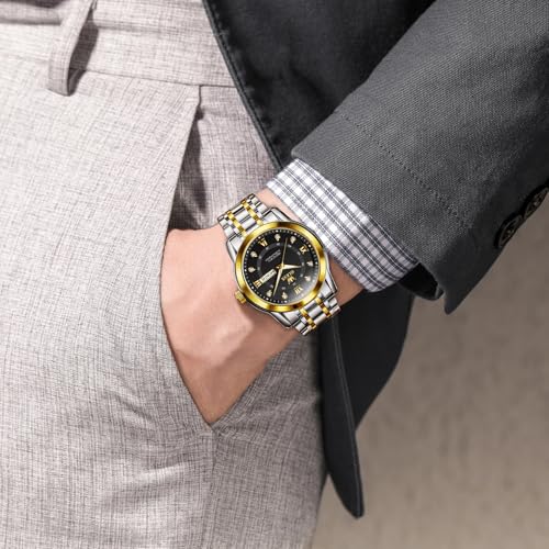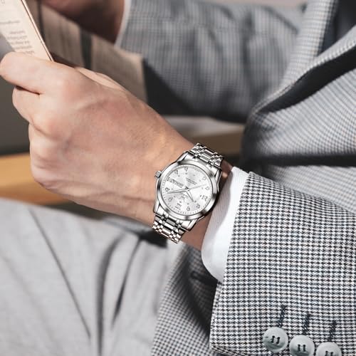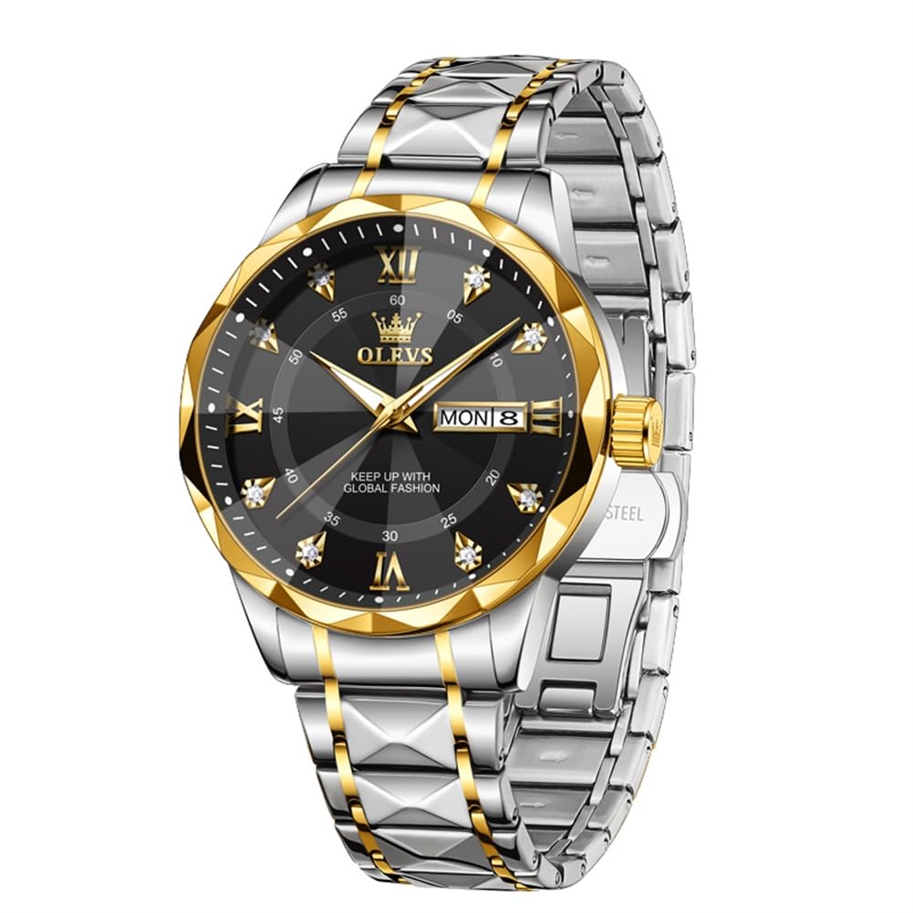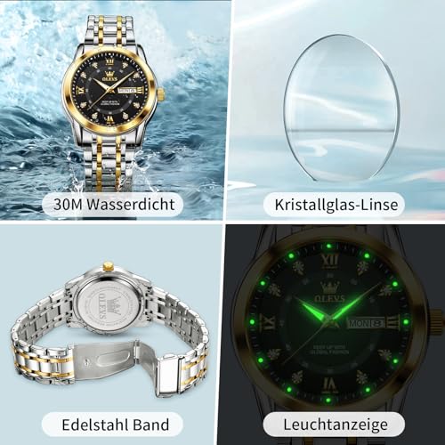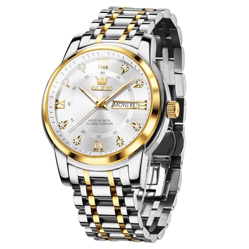 OLEVS Uhren Herren, Klassisches Diamant Edelstahl Wasserdicht Leuchtend Quarzuhr Herren, Römische Ziffern Tag Datum Analoge Geschäft Uhr für Herren