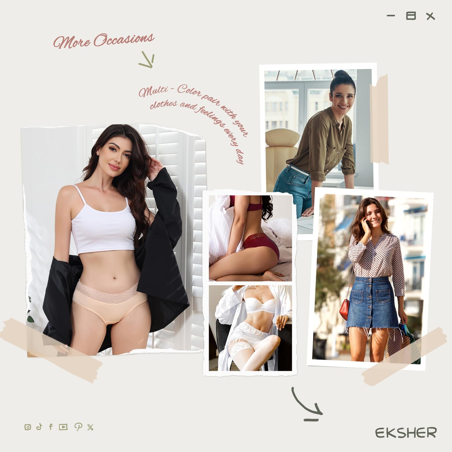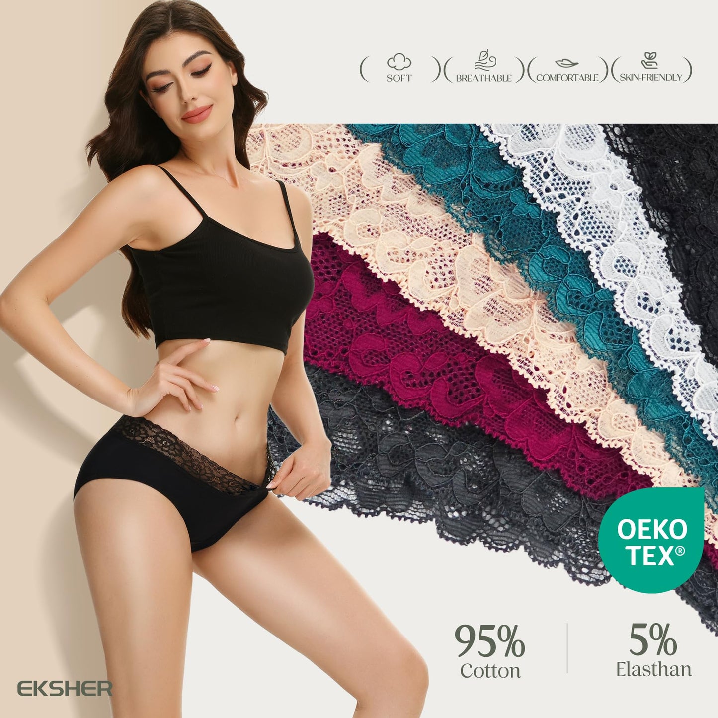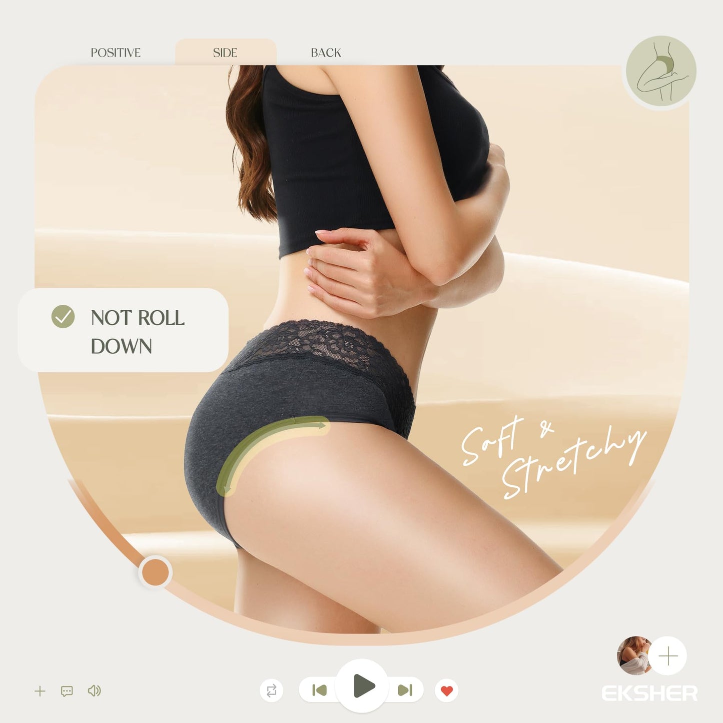 Upgrade your everyday essentials with EKSHER’s Women's Lace Hipster Cotton Briefs. Designed with a luxurious wide lace waistband and crafted from soft, breathable fabrics, these panties provide exceptional comfort without compromising on style. Featuring a double-layered 100% cotton crotch for hygiene and durability, these high-mobility briefs are ideal for daily wear, making you feel confident, feminine, and effortlessly stylish.