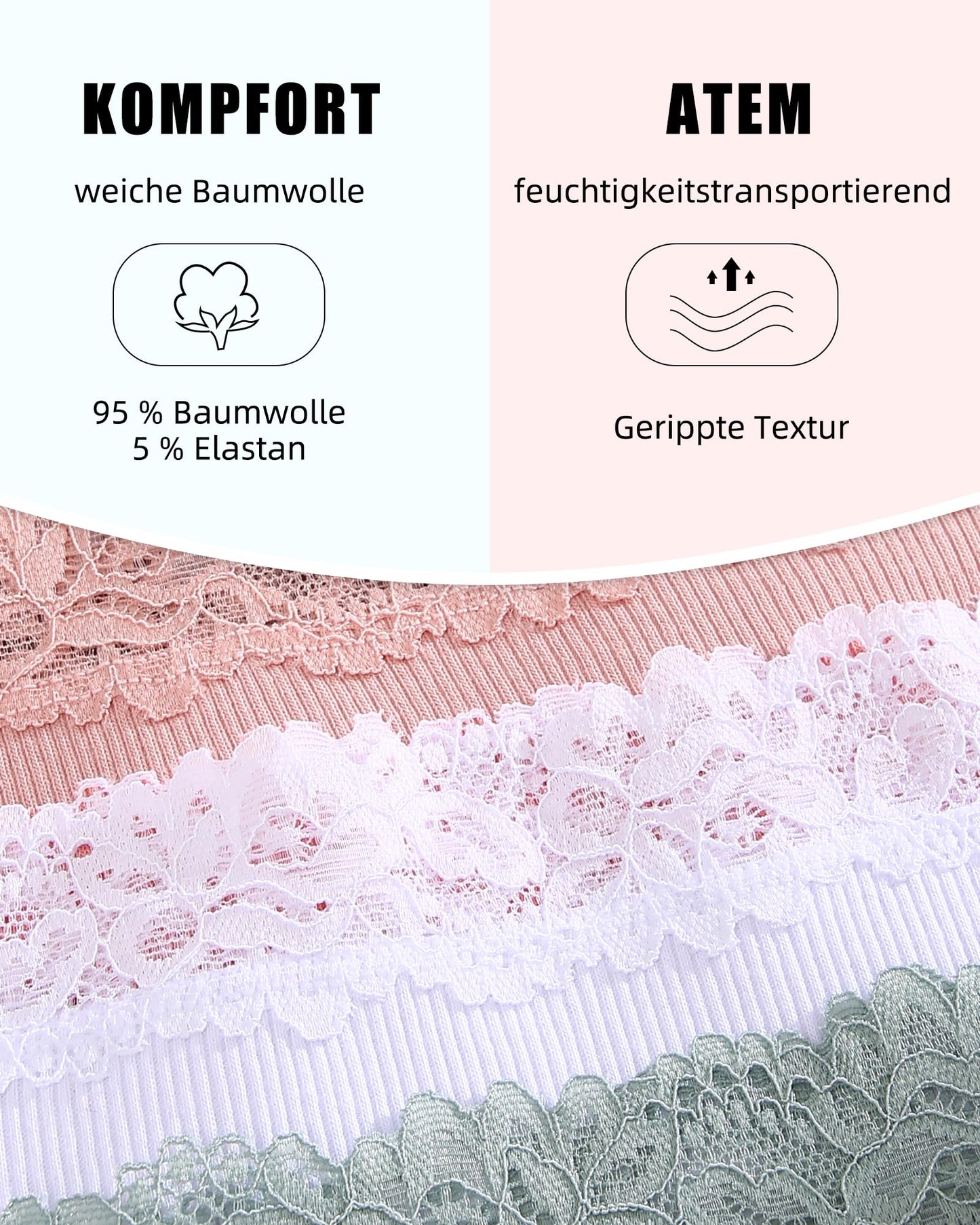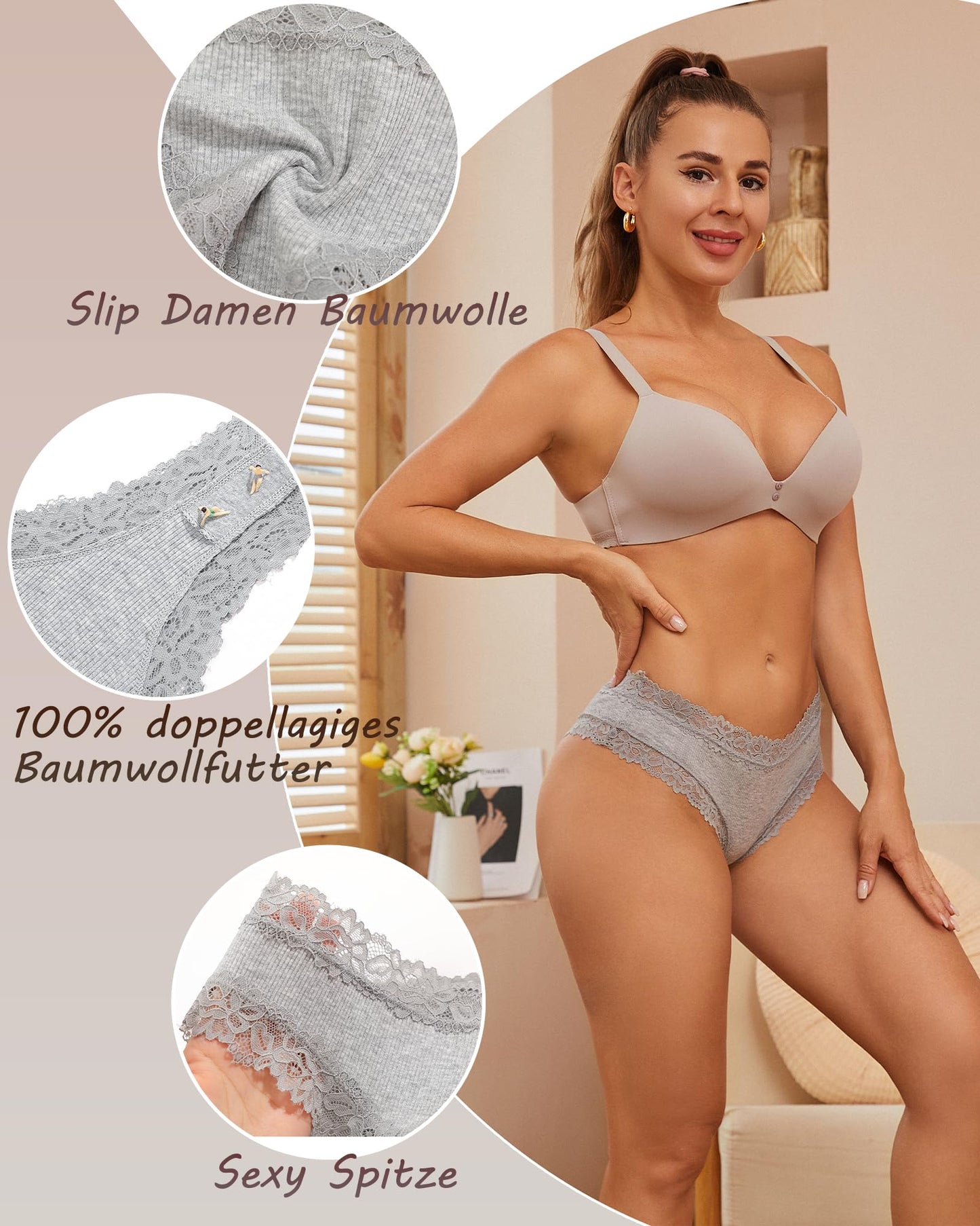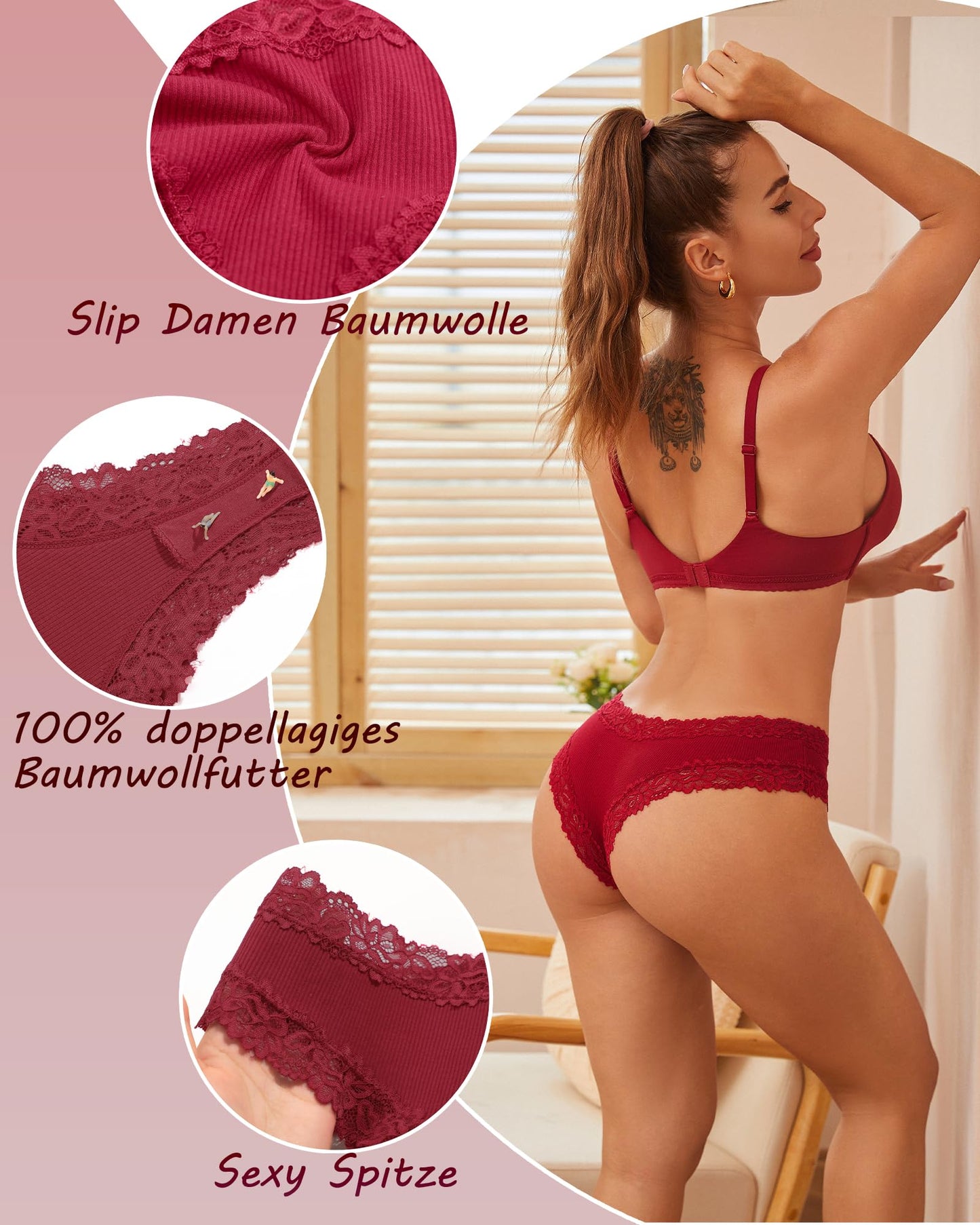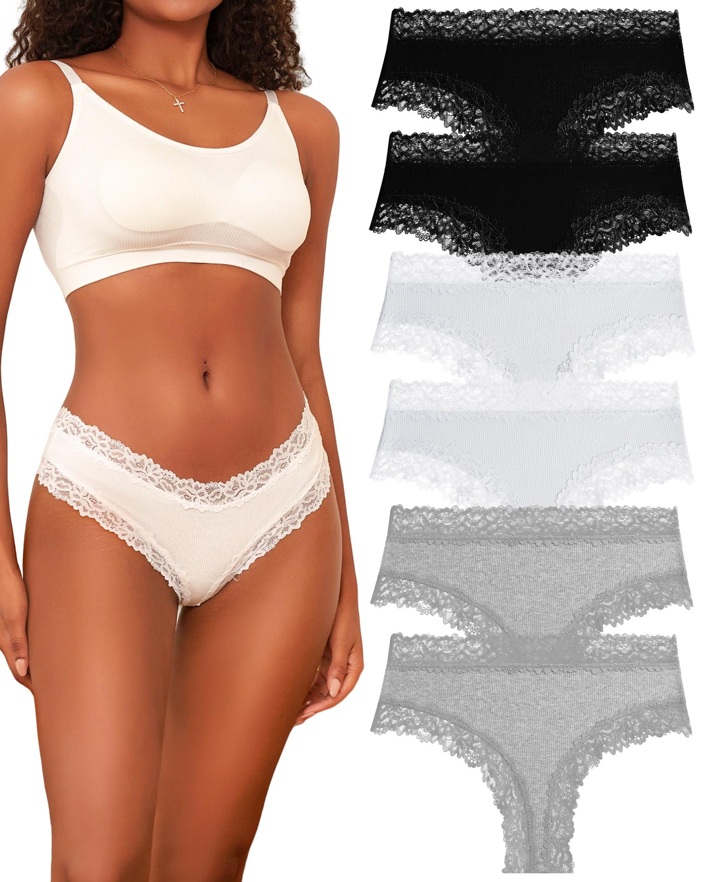 Women's Ribbed Brazilian Briefs Lace Underwear Soft Sexy - 6-Pack
