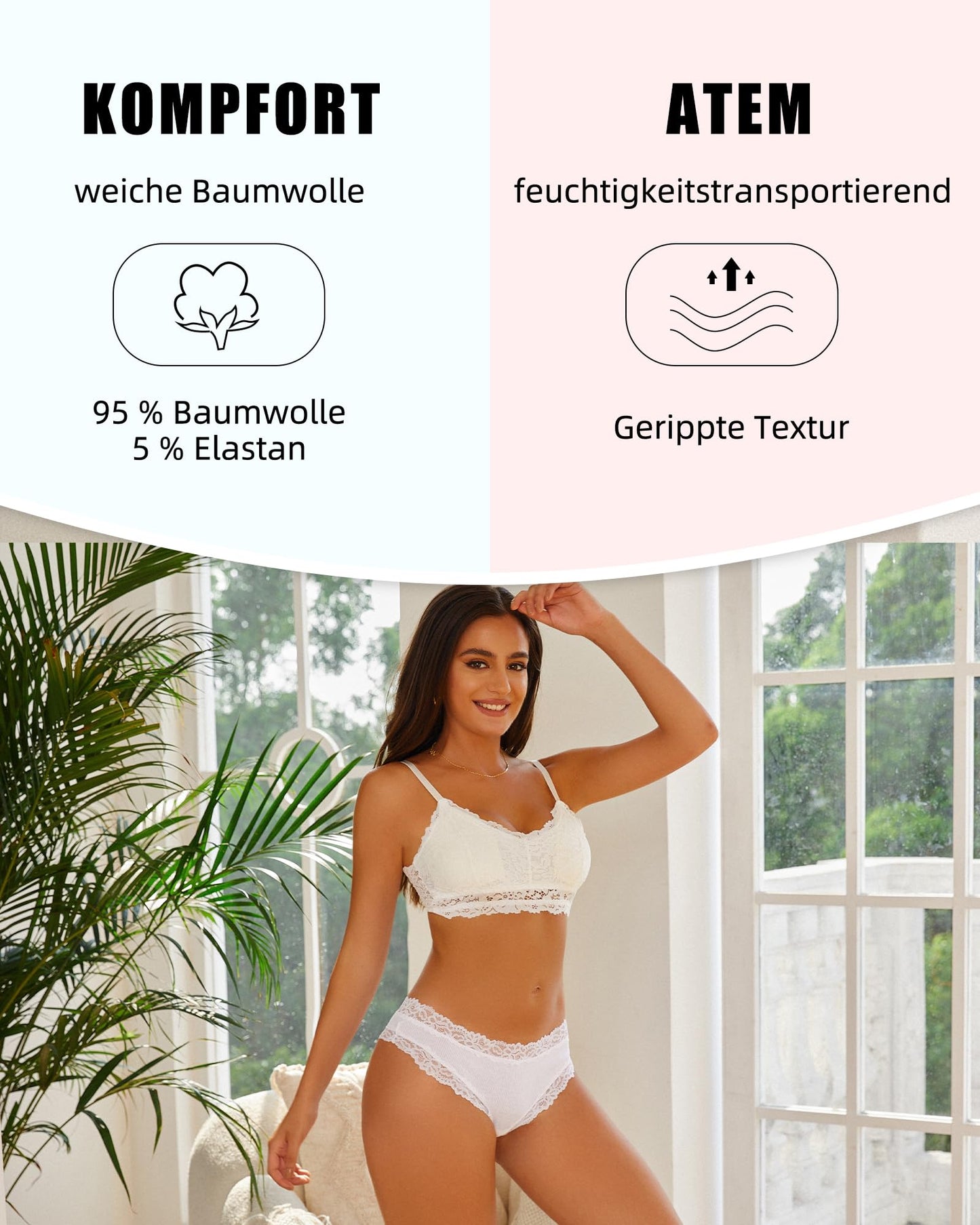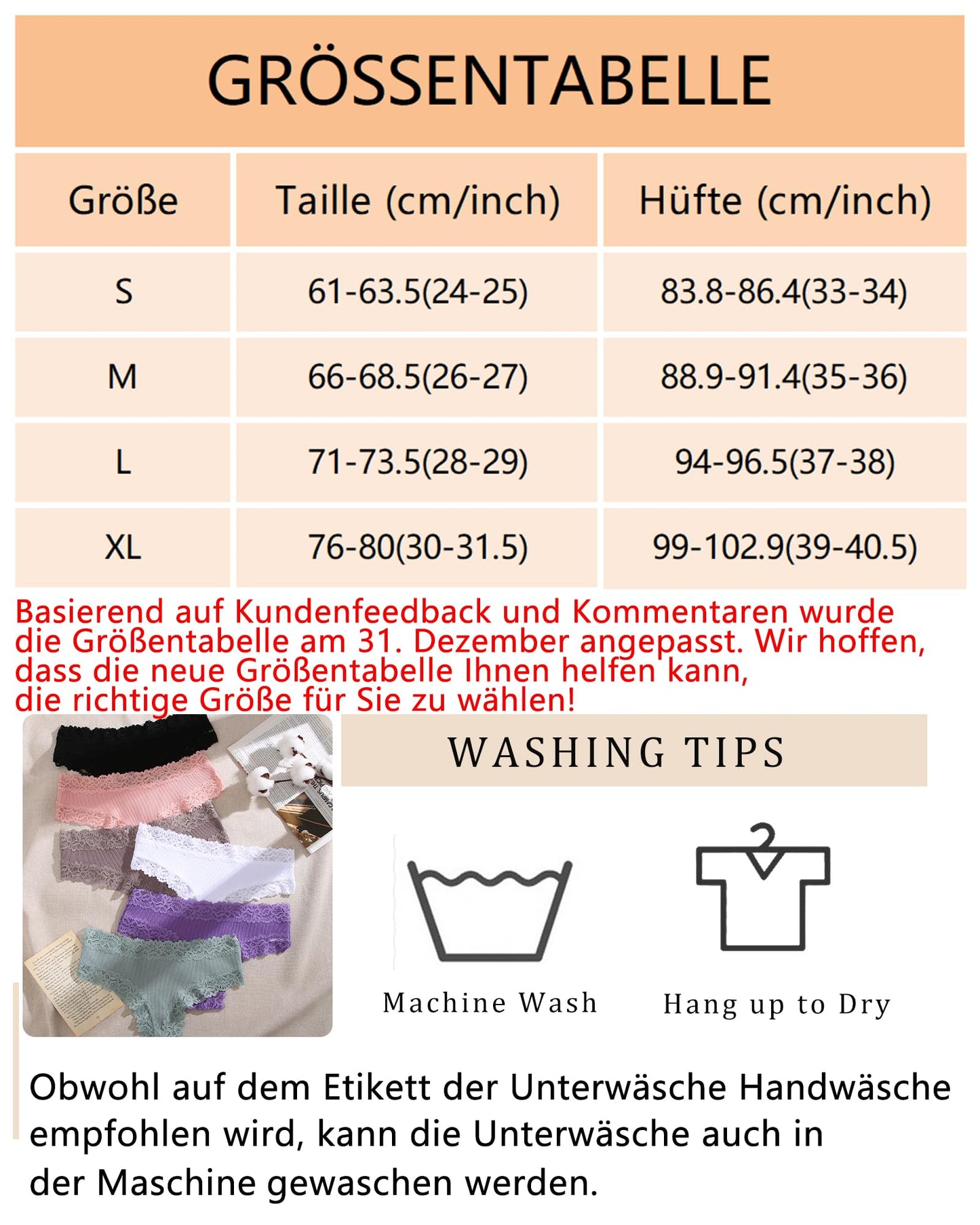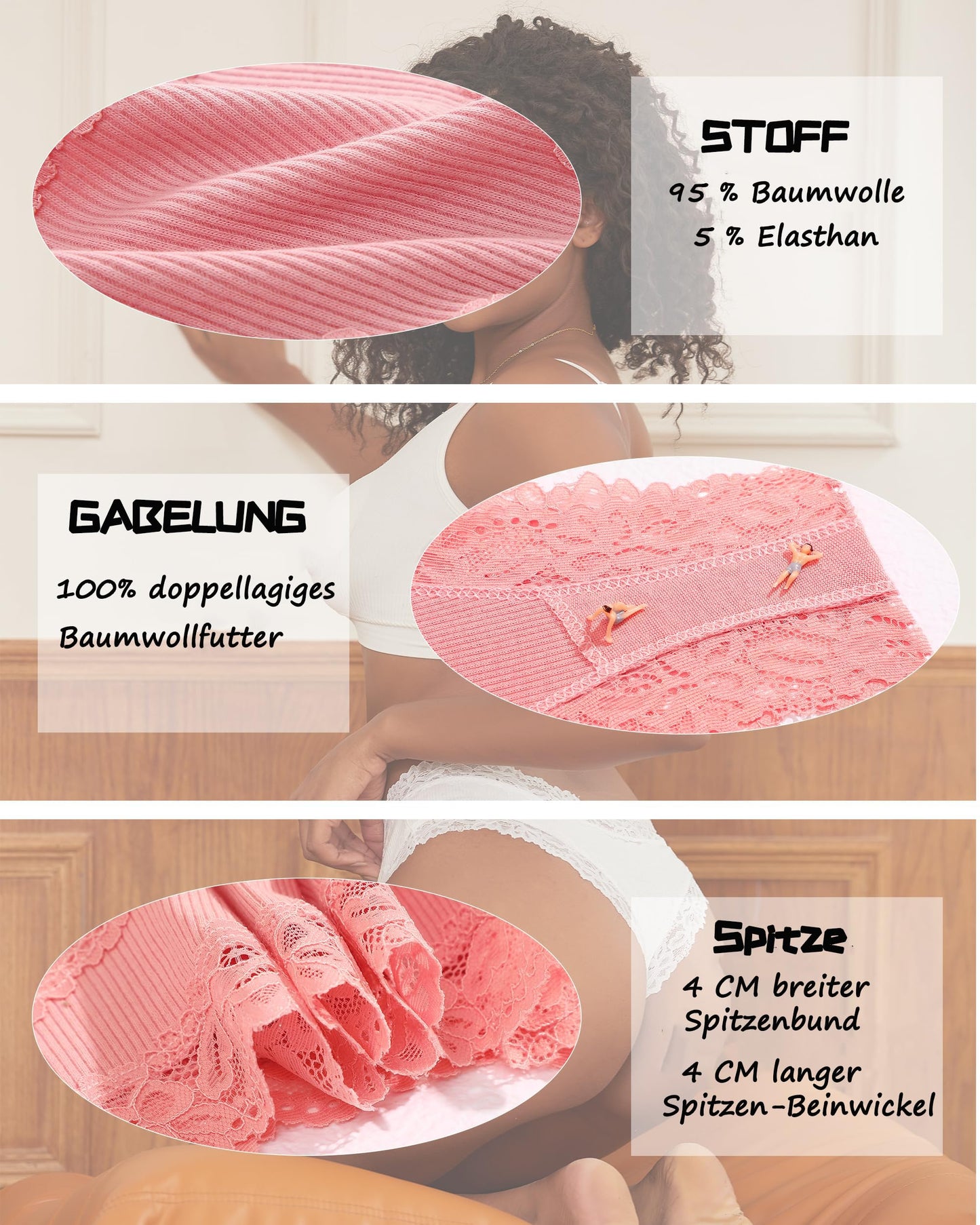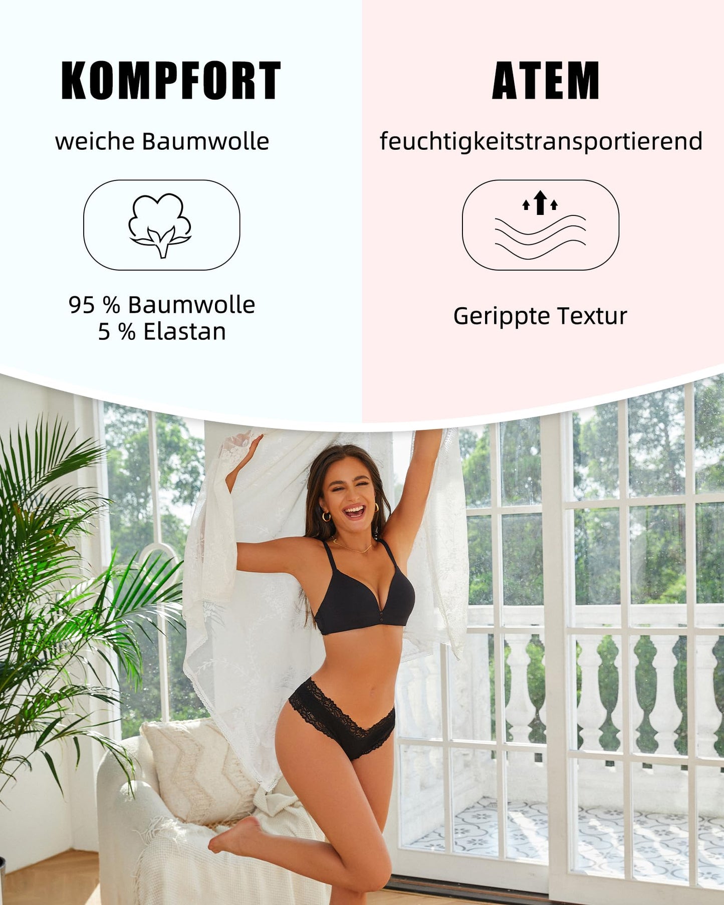 Women's Ribbed Brazilian Briefs Lace Underwear Soft Sexy - 6-Pack