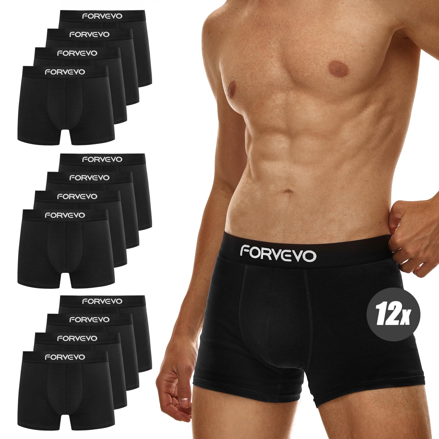 Upgrade your daily essentials with this 12-pack of FORVEVO men's boxer shorts. Made from a premium cotton blend, these boxers provide comfort, breathability, and a perfect fit for all-day wear. The ergonomic design ensures they stay in place without rolling up, offering you freedom of movement. With no itchy labels, these boxers are a comfortable and practical addition to any wardrobe. Available in multiple colors and sizes, from S to 4XL, this set is a great value for men seeking both style and comfort.