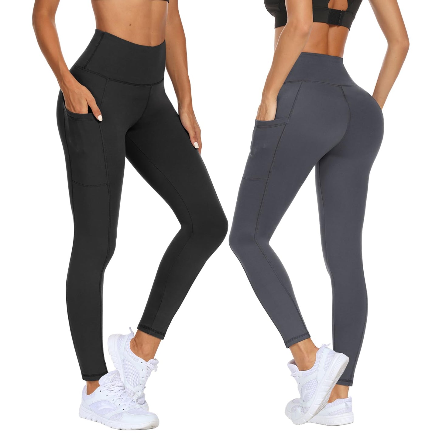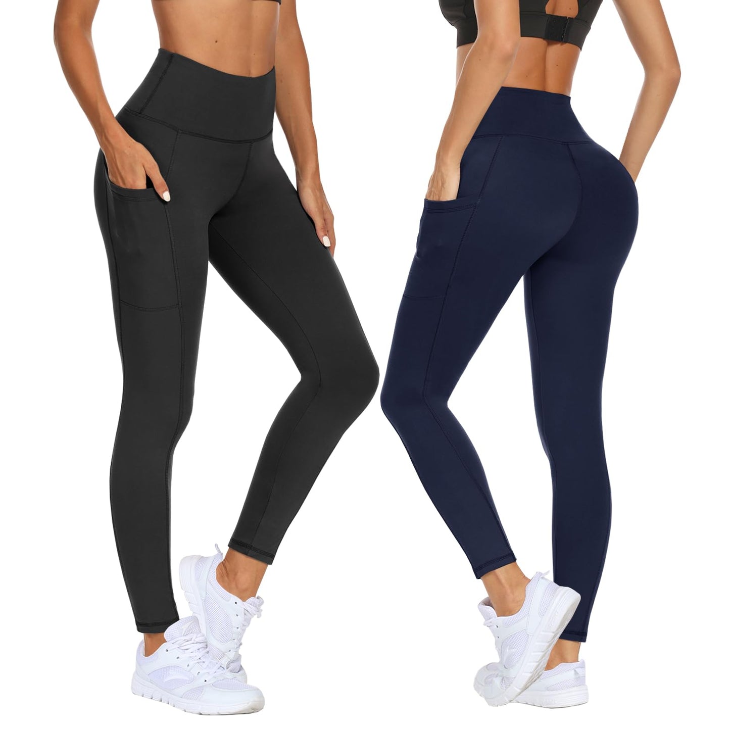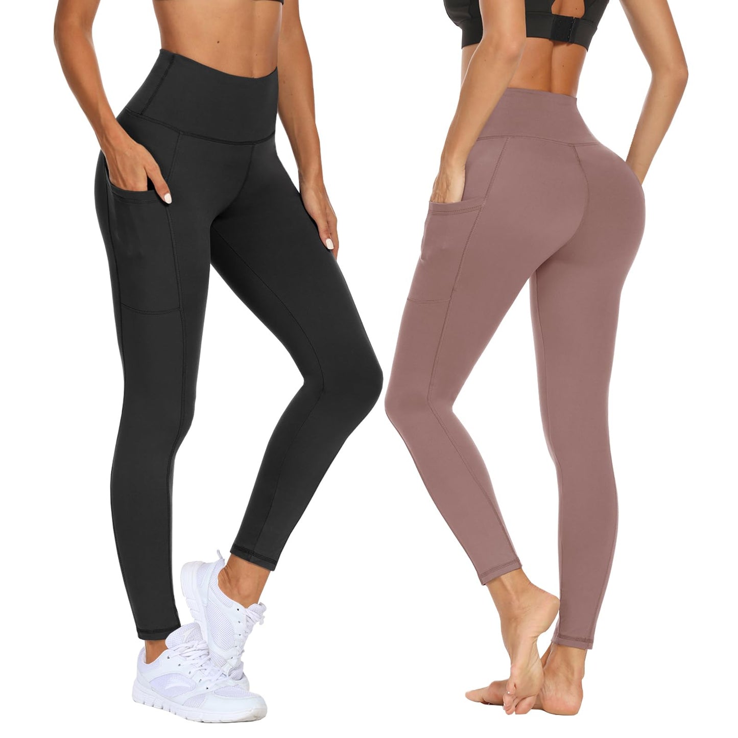 2-Pack Women’s High Waist Sport Leggings – With Pockets, Squat-Proof, Tummy Control