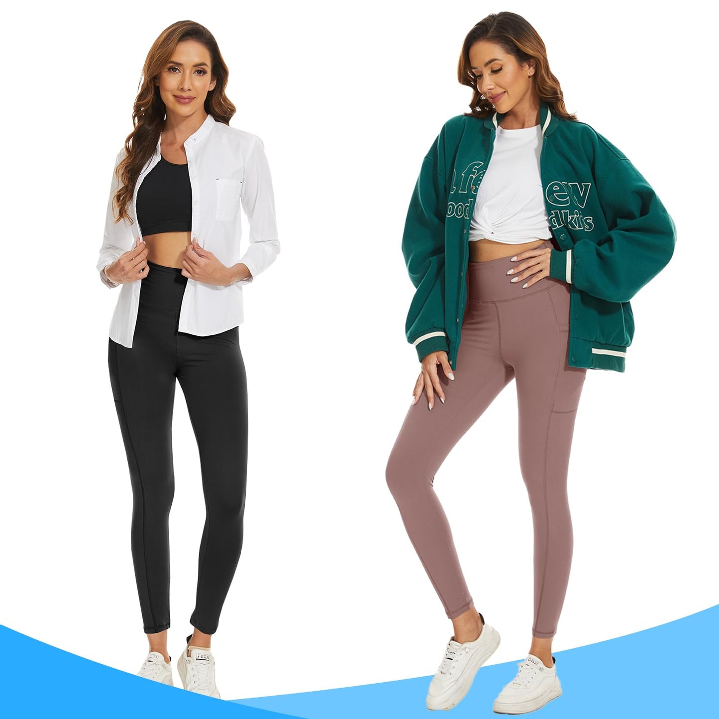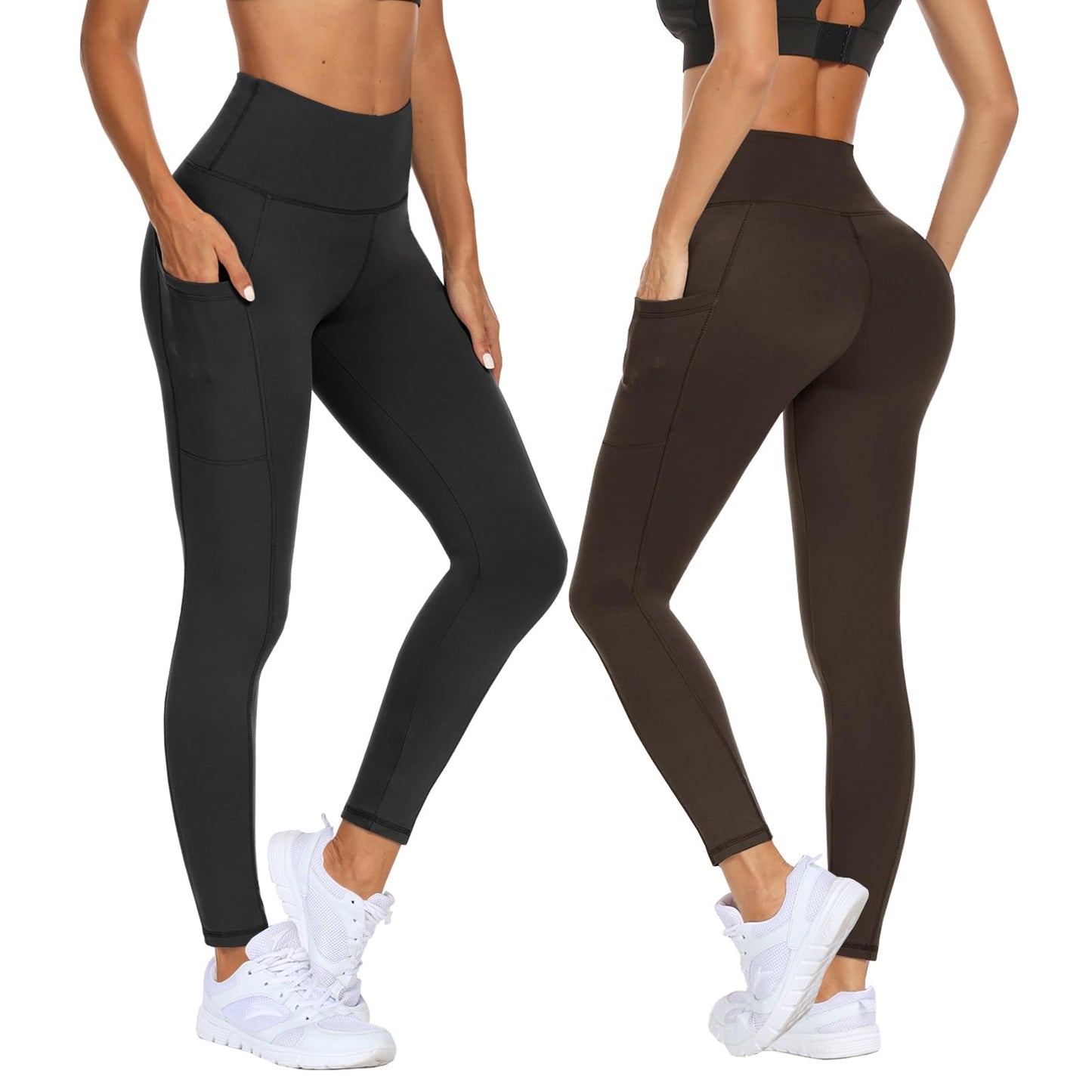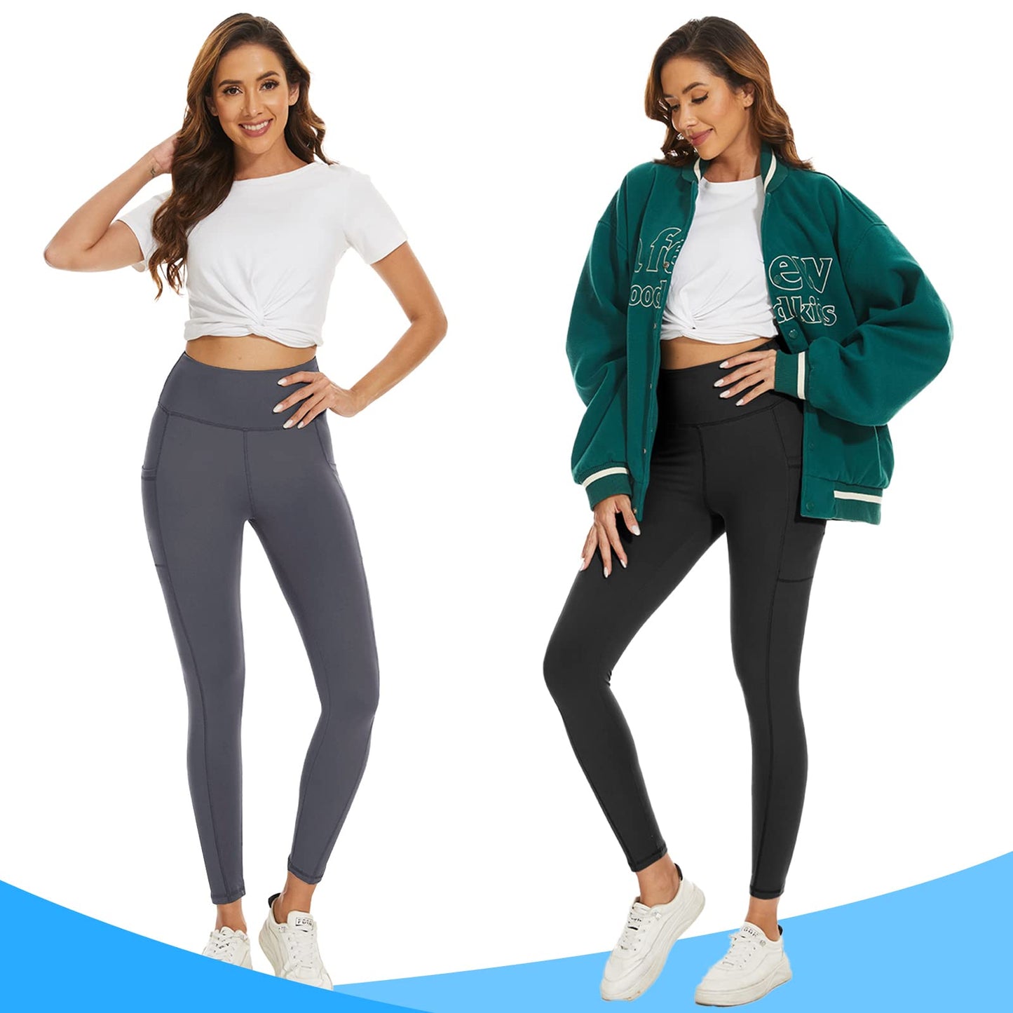 2-Pack Women’s High Waist Sport Leggings – With Pockets, Squat-Proof, Tummy Control