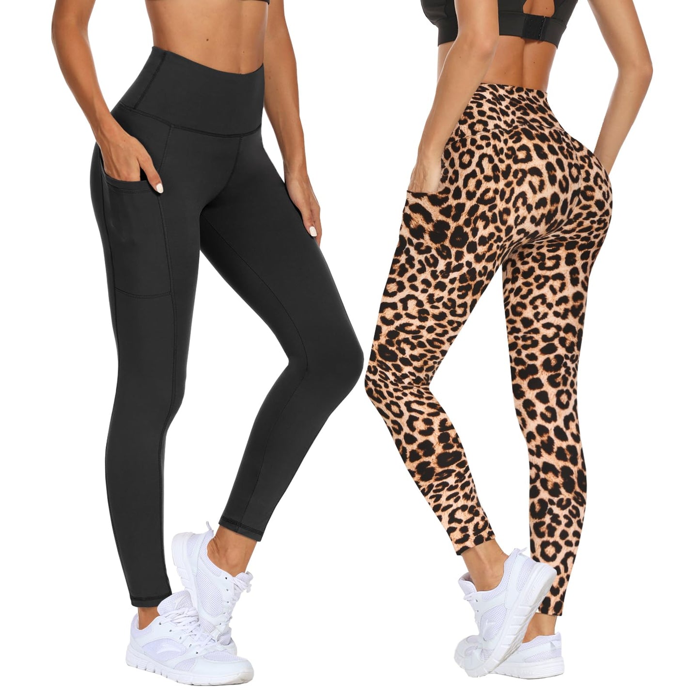 2-Pack Women’s High Waist Sport Leggings – With Pockets, Squat-Proof