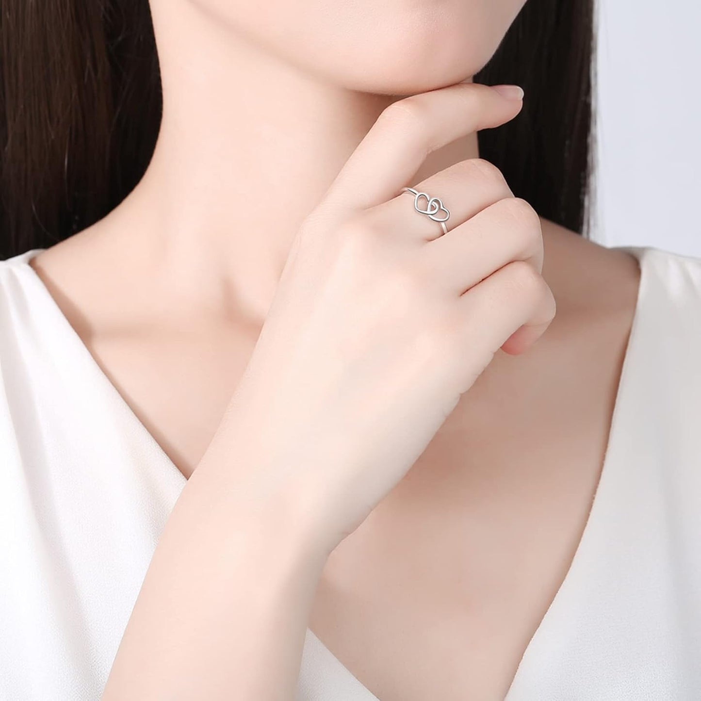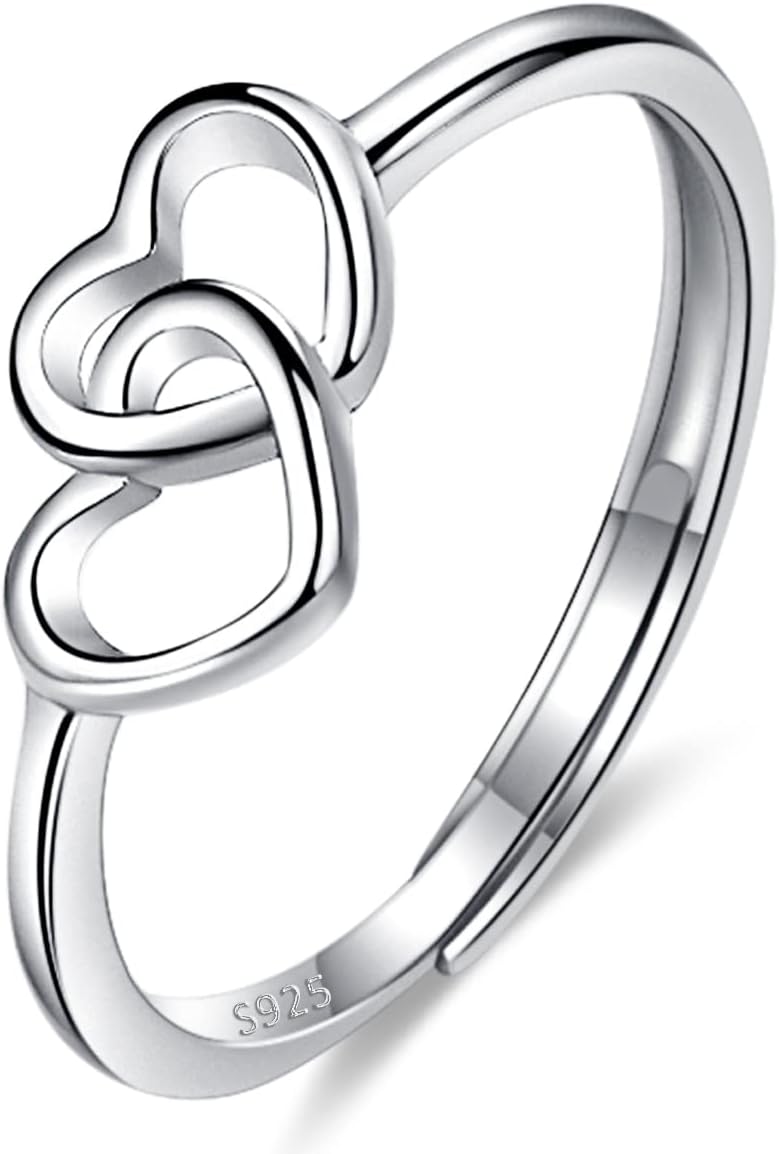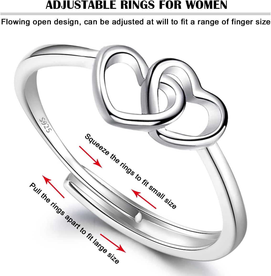 925 Sterling Silver Heart Ring – Adjustable Silver Jewelry for Women