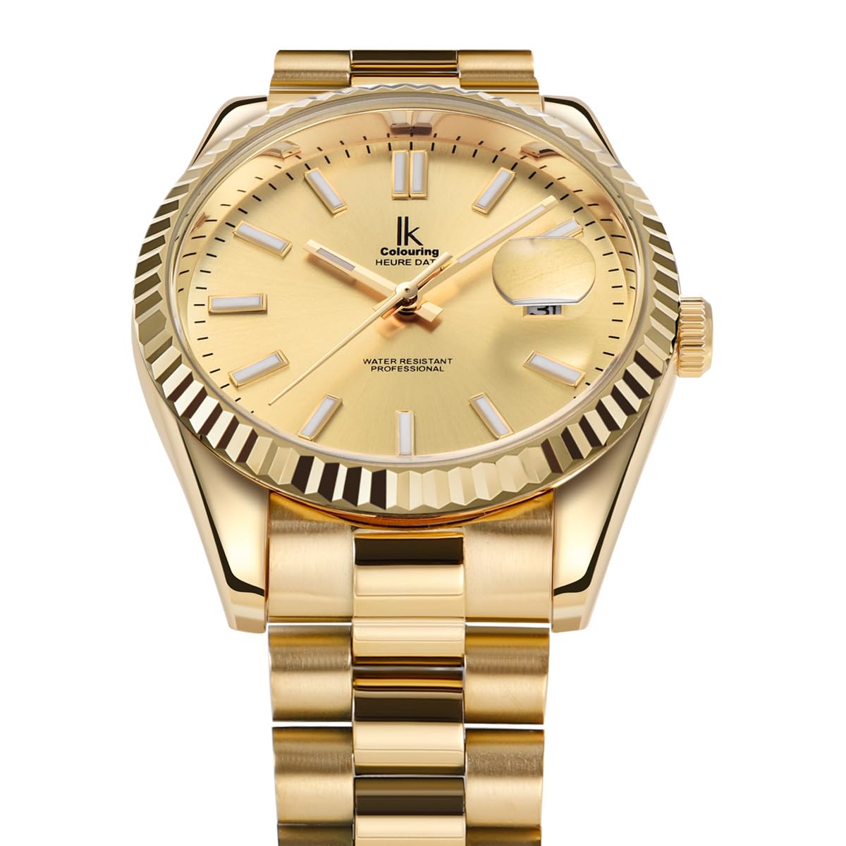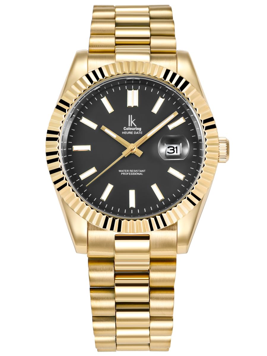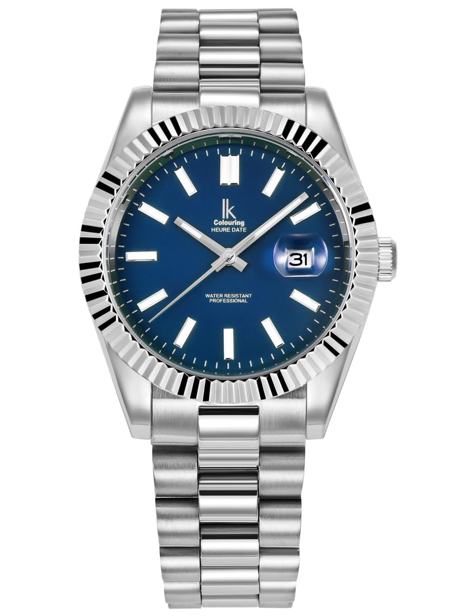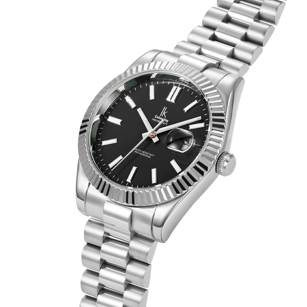 Alienwork IK Armbanduhr Herren Damen Kalender Metall-Armband