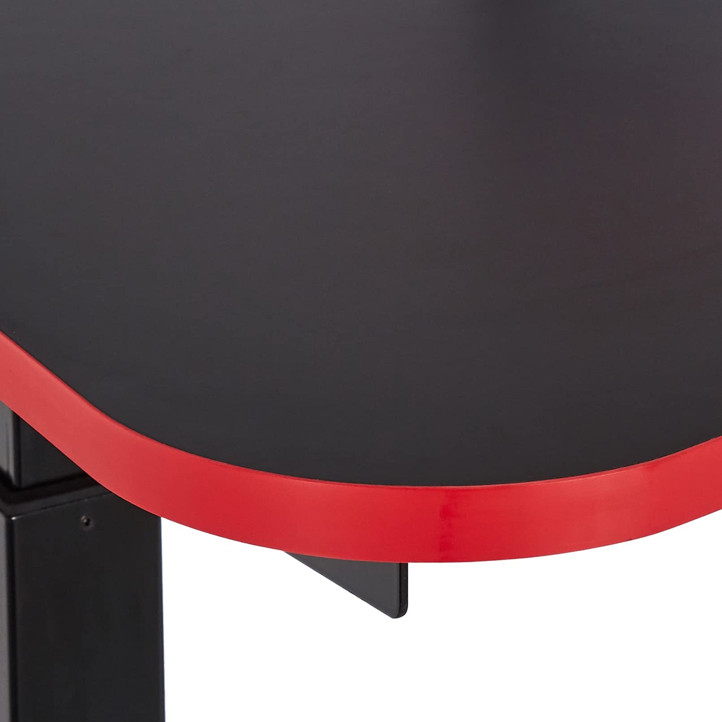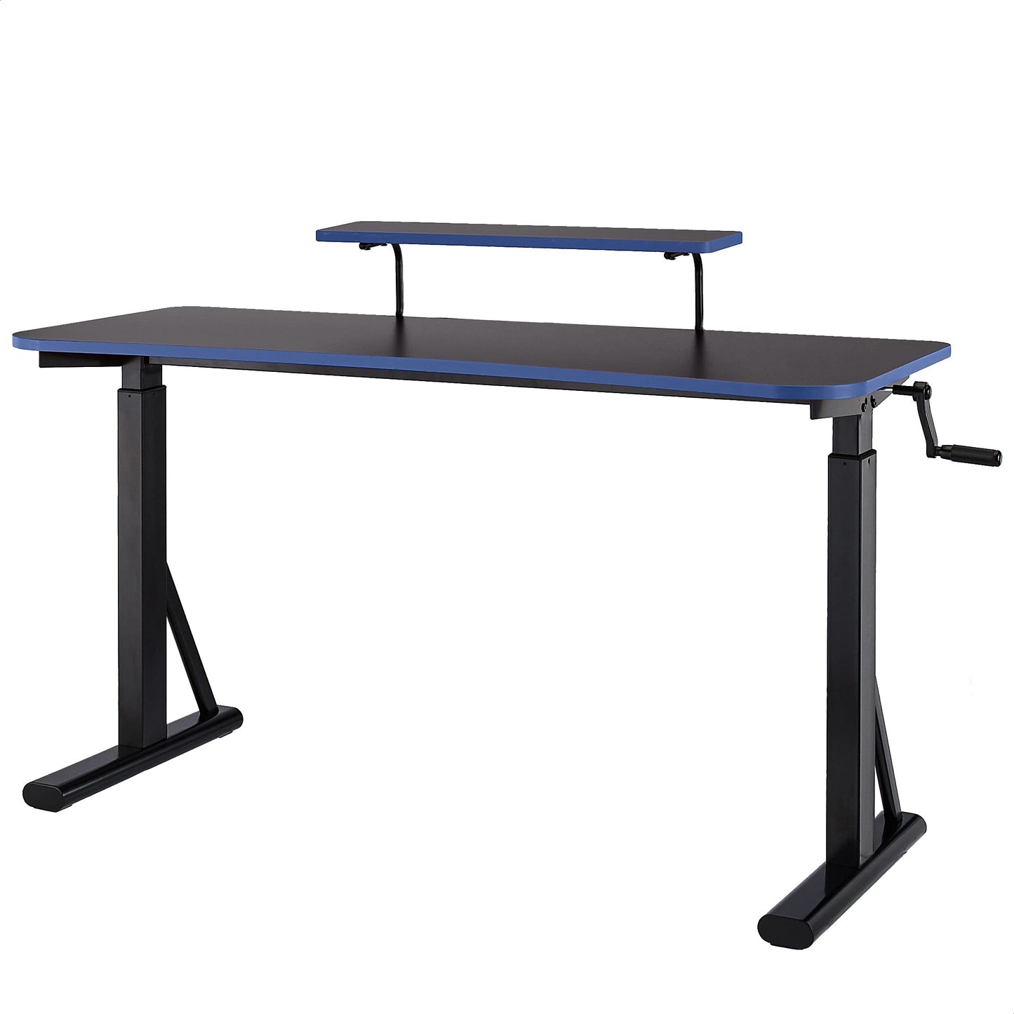 Amazon Basics Rechteckig Höhenverstellbarer Gaming Computertisch Schreibtisch mit erhöhter Monitorablage, 140 x 63.5 x 109-126 cm, Blau