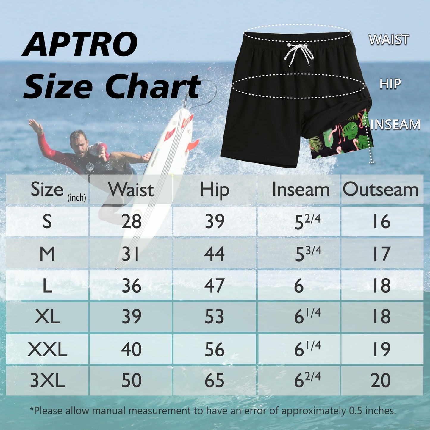 Upgrade your summer gear with APTRO’s 2-in-1 swim shorts for men. These quick-drying board shorts feature a lightweight outer shell and a soft, elastic inner liner designed to prevent chafing and protect your privacy. With four practical pockets—including an internal phone pocket—these shorts combine style, comfort, and functionality. The elastic waistband with adjustable drawstring ensures a secure fit, while the 6-inch inseam allows for full range of motion. Whether you're at the beach, swimming, surfing, or working out, APTRO shorts offer the performance and style you need.