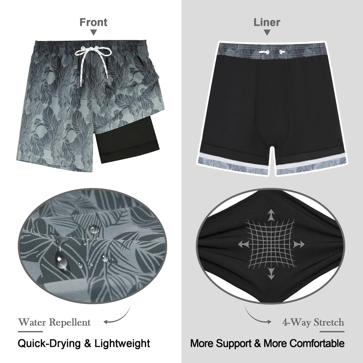 2-in-1 design with elastic inner liner for support and anti-chafing comfort