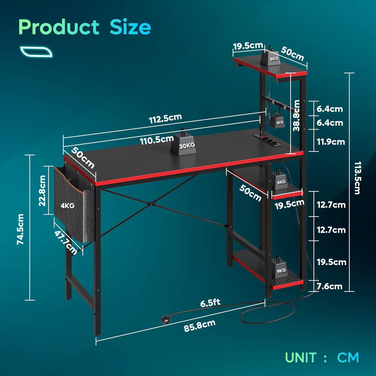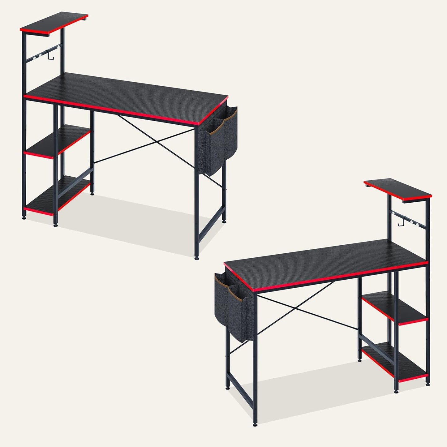 - Geräumiger Stauraum: Die Arbeitsfläche von 113 cm x 50 cm x 113,5 cm bietet ausreichend Platz für Ihre Arbeitsutensilien. Die Regale können je nach Bedarf links oder rechts montiert werden. Verstellbare Füße sorgen dafür, dass der Schreibtisch auch auf unebenen Böden stabil steht.