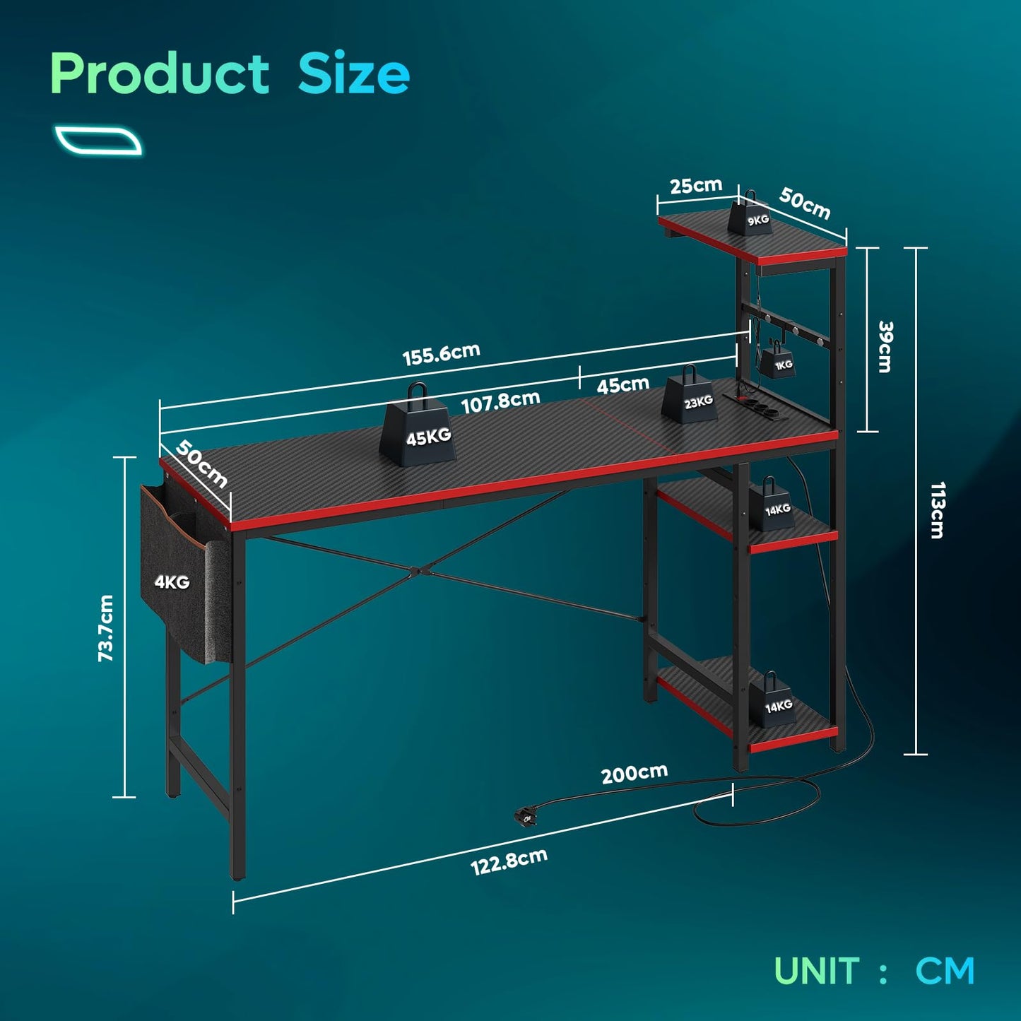 - Integrierte Steckdosen: Praktische Steckdosen direkt am Tisch sorgen für bequemen Zugang zu Strom für all Ihre Geräte. Die verstellbaren Regale maximieren den verfügbaren Platz auf dem Schreibtisch, sodass Ihr Home Office stets aufgeräumt und gemütlich bleibt.