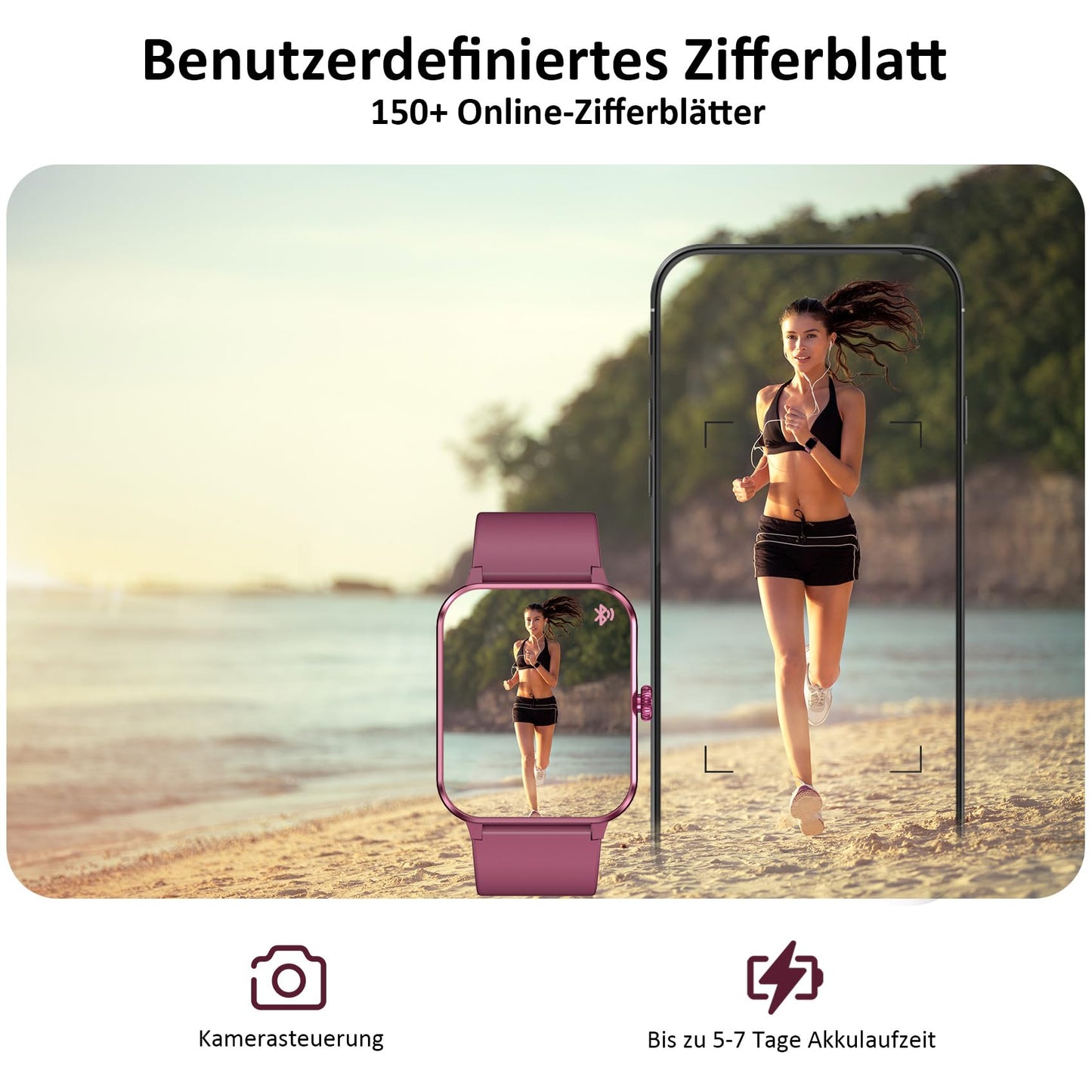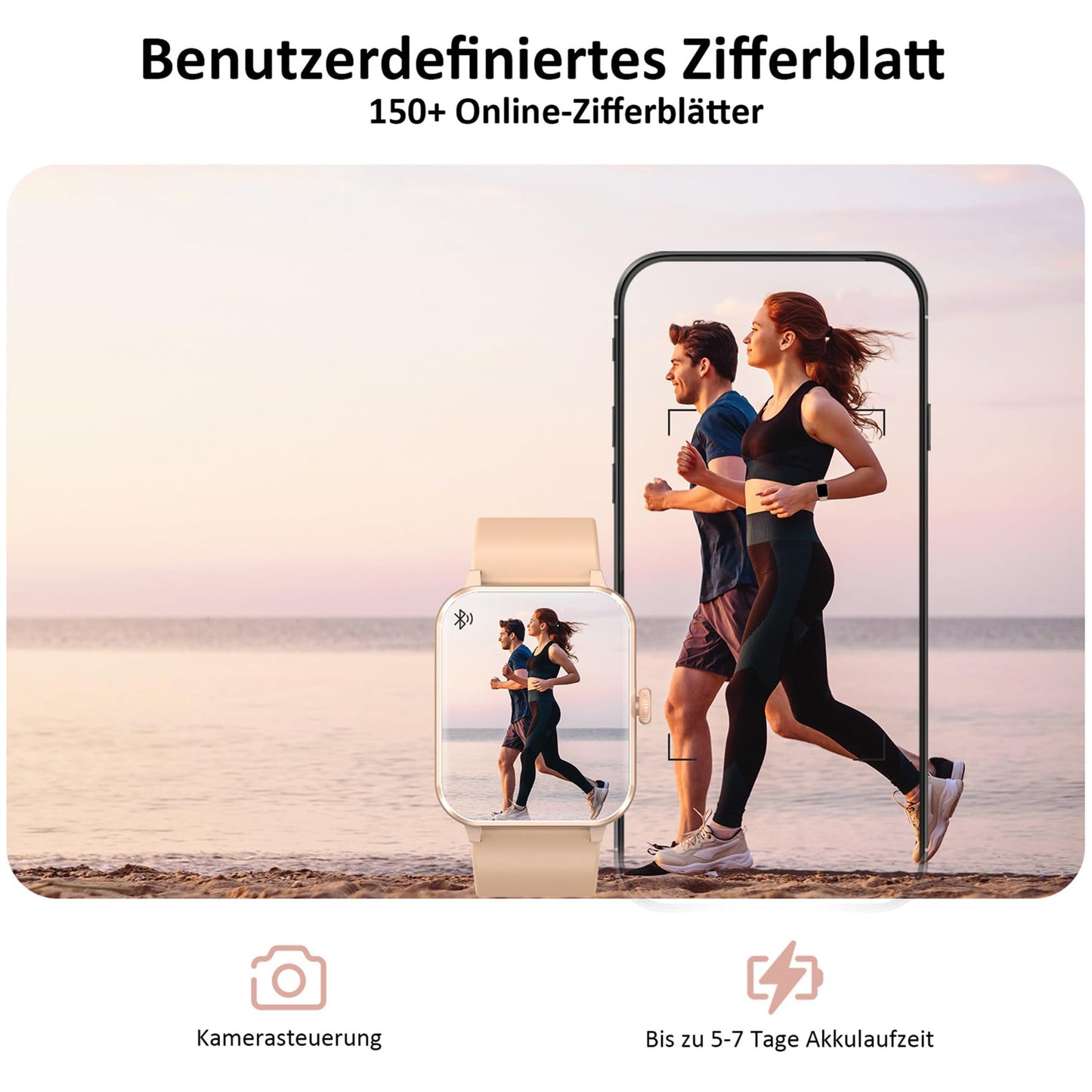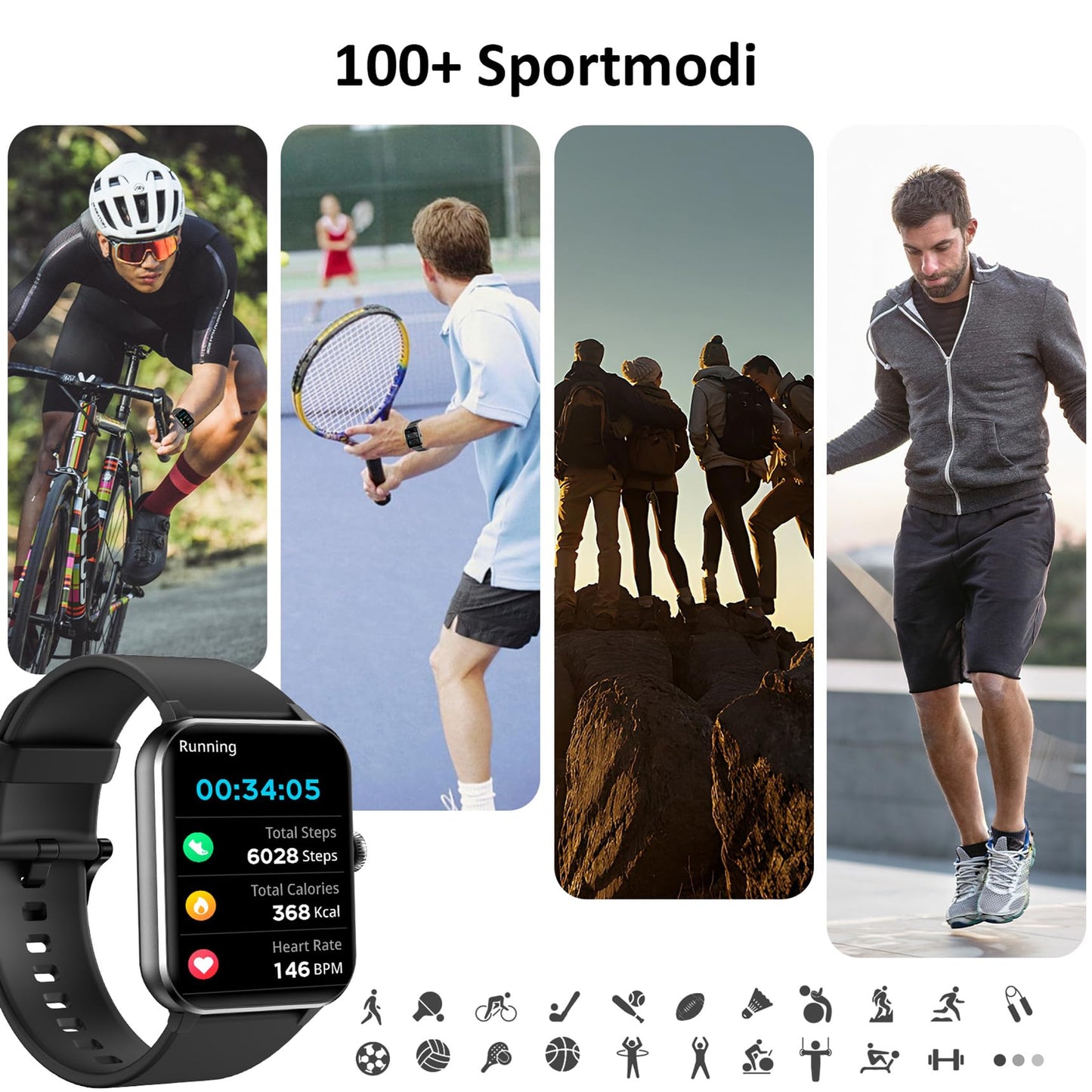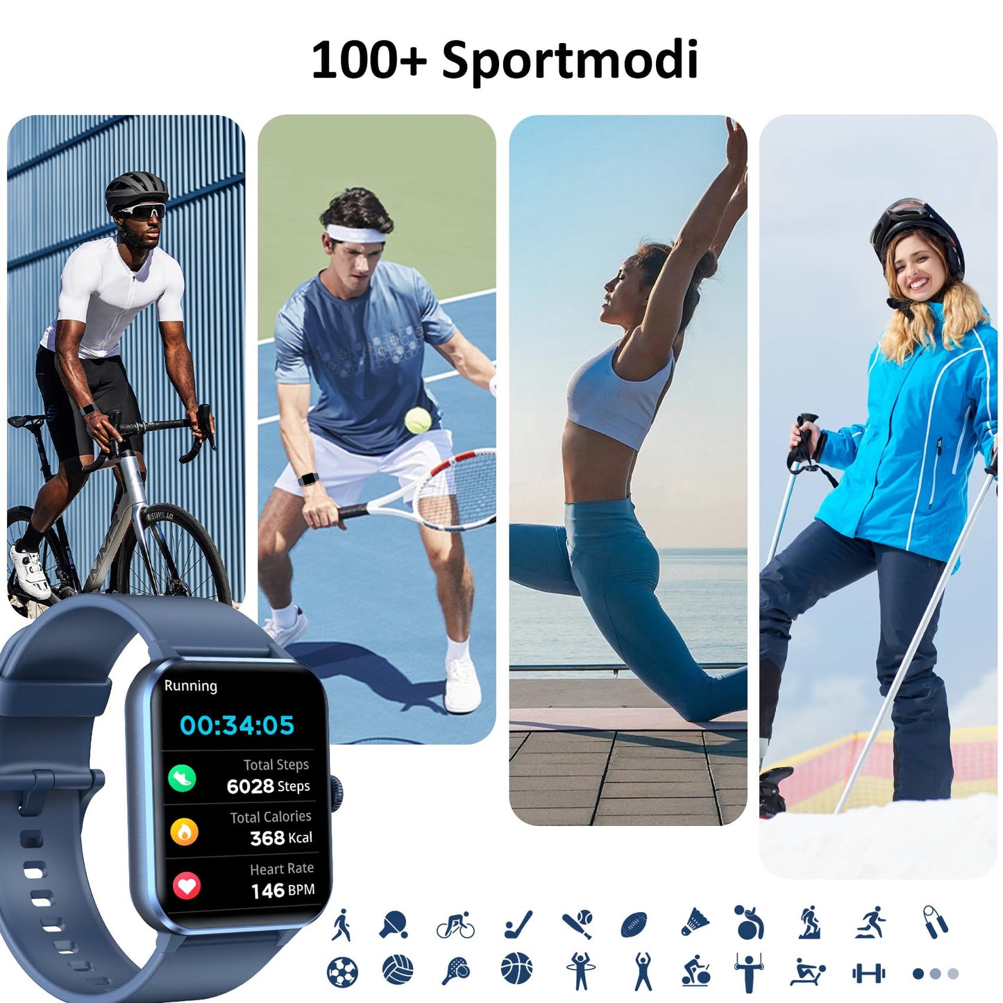 - 👍【Täglichen Schritte und Aktivitäten】Diese fitnessuhr unterstützt 100+ Sportmodi, Egal ob Laufen, Radfahren oder Yoga – hier ist für jede Sportart etwas dabei. Darüber hinaus unterstützt die Uhr auch die separate Aufzeichnung Ihrer täglichen Daten wie Schritte, verbrannte Kalorien und Distanz.
