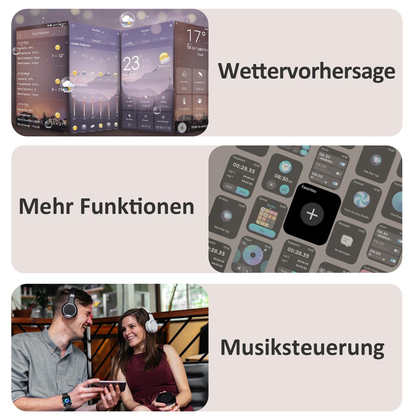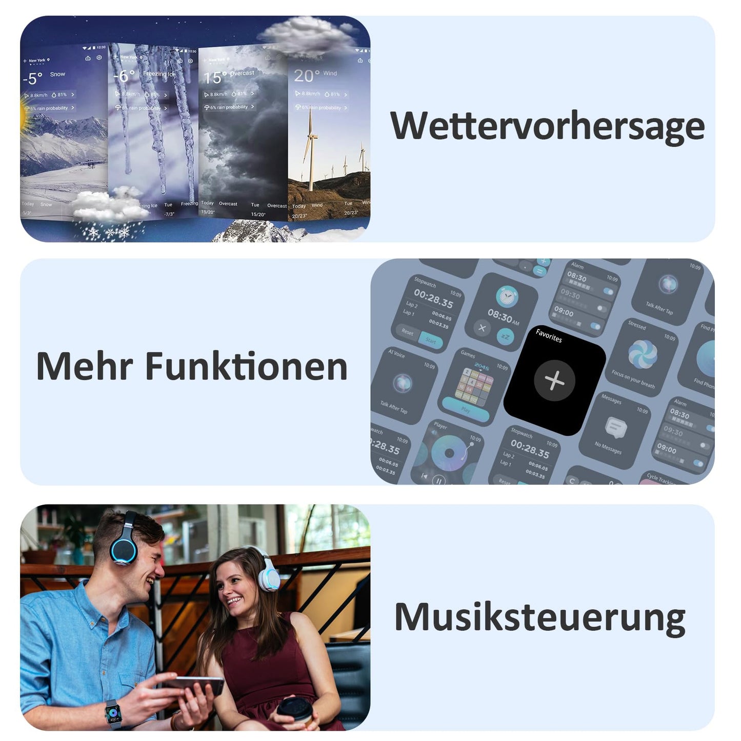 Besonderes Merkmal | Bluetooth-Anrufe, Sprachassistent, Gesundheitsüberwachung in Echtzeit (Herzfrequenz, Blutsauerstoff, emotionaler Stress, Schlafüberwachung) Mehr anzeigen |