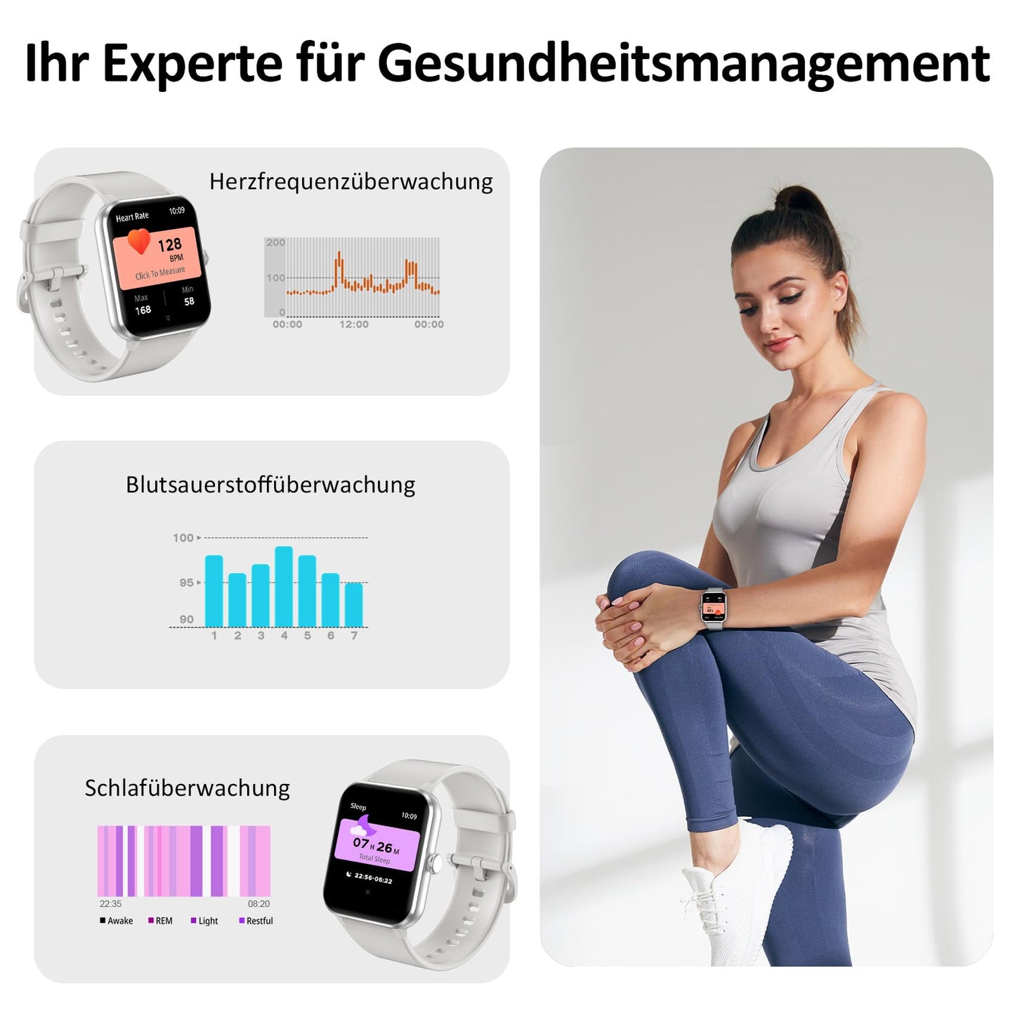 - 👍【24/7 Gesundheitsüberwachung】Blackview Smartwatch hat auch eine Echtzeit-Gesundheitsüberwachungsfunktion, die Gesundheitsdaten des Benutzers aufzeichnet und überwacht, einschließlich Herzfrequenz, Blutsauerstoff, emotionaler Stress, Schlafanalyse. Diese Überwachungsdaten können Ihnen helfen, Ihren Gesundheitszustand, Schlafqualität und Aktivität der Übung im täglichen Leben zu verstehen, so dass Sie entsprechende Maßnahmen ergreifen können, um Ihre Gesundheit und Lebensstil zu verbessern.