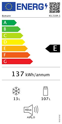 - Mit einem Nutzinhalt von 120 Litern und einem Kühlbereich von 107 Litern und einem Gefrierbereich von 13 Litern bietet dieser Kühlschrank ausreichend Platz für Ihre täglichen Bedürfnisse
