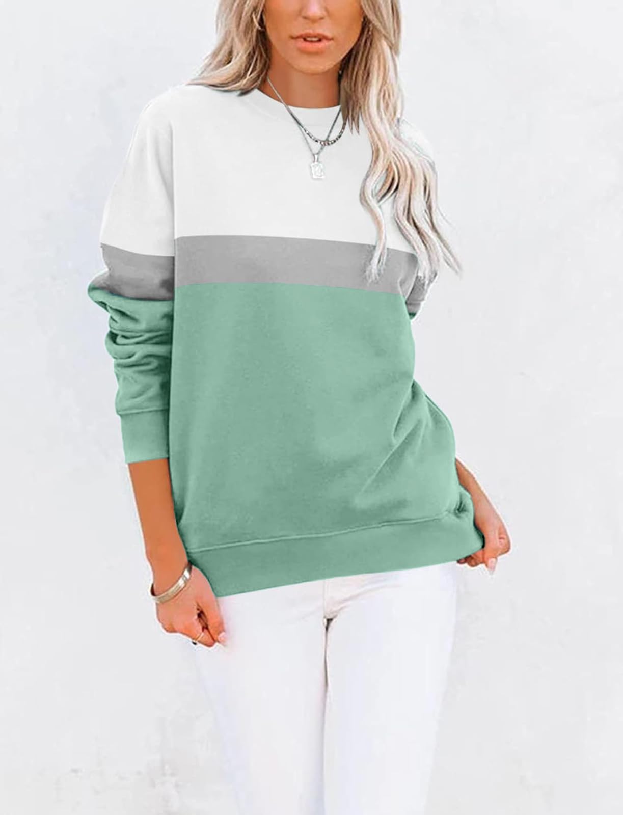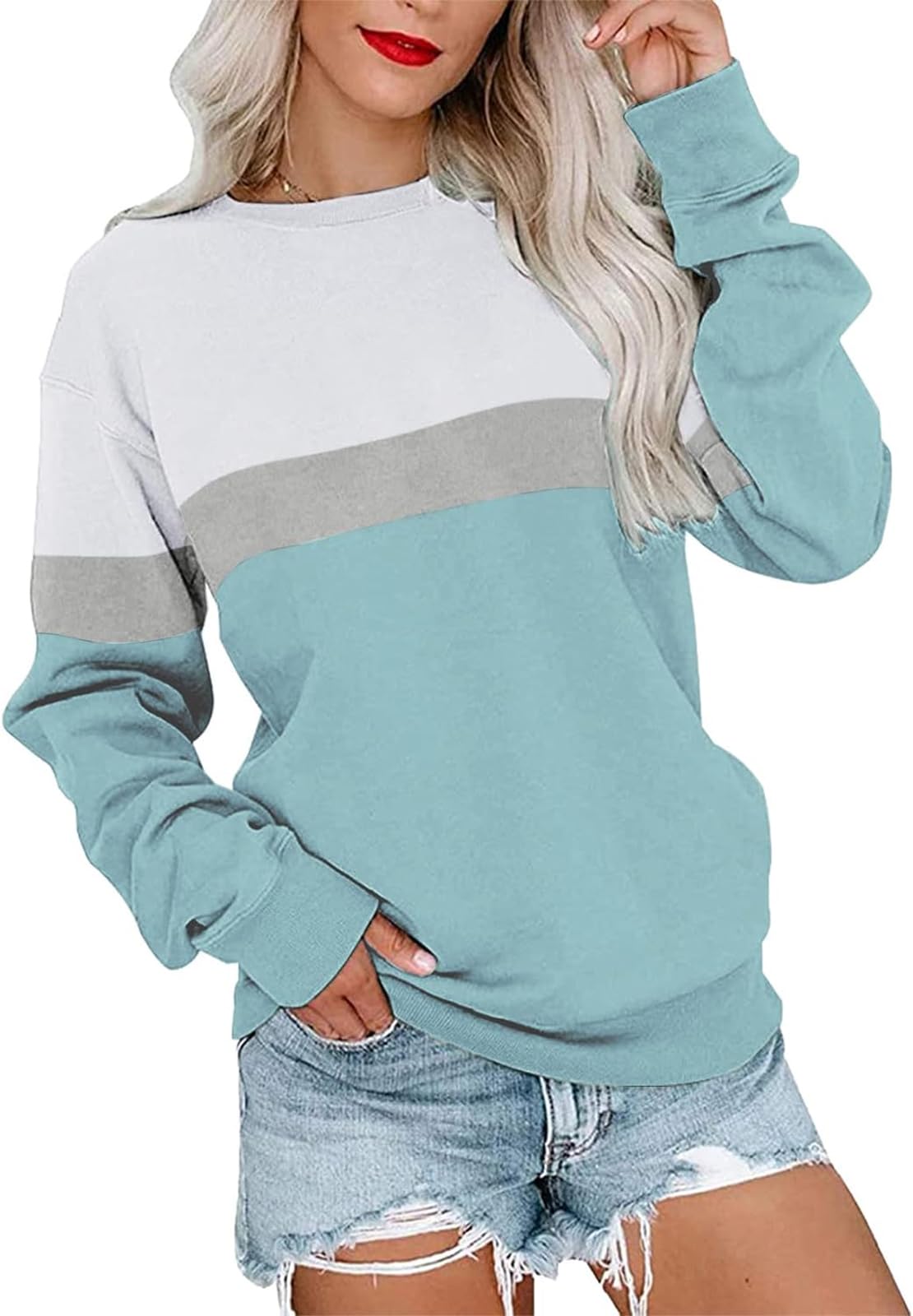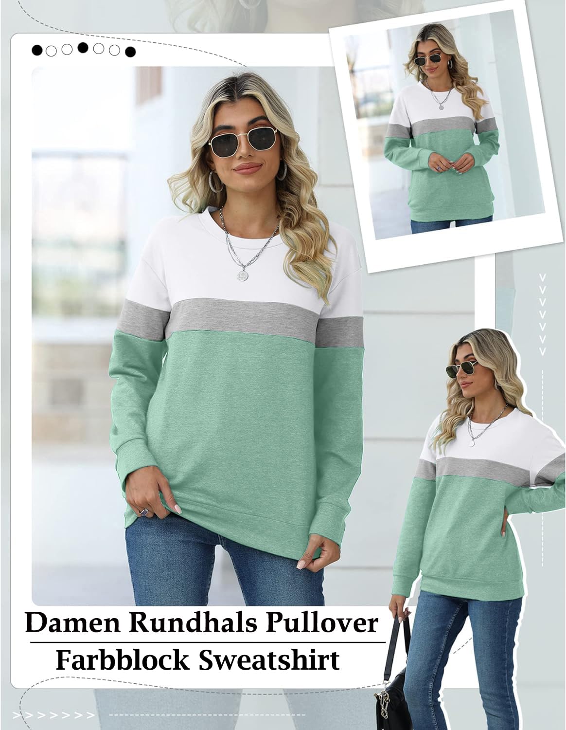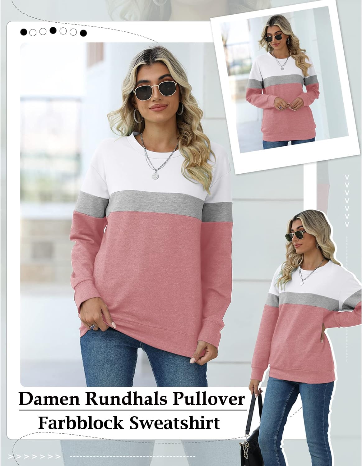 BUHIM Women’s Colorblock Sweatshirt – Casual Crewneck Long Sleeve Pullover